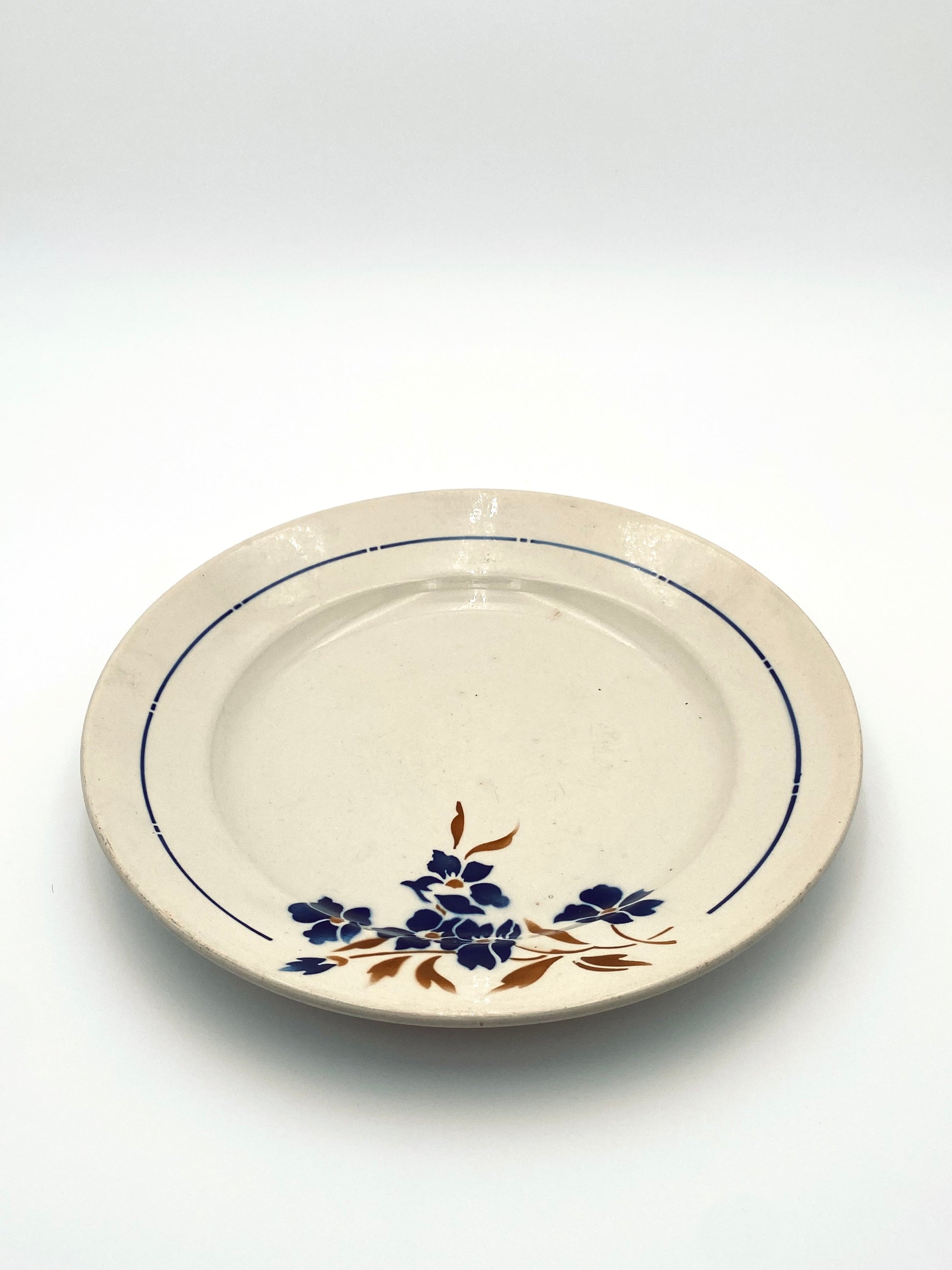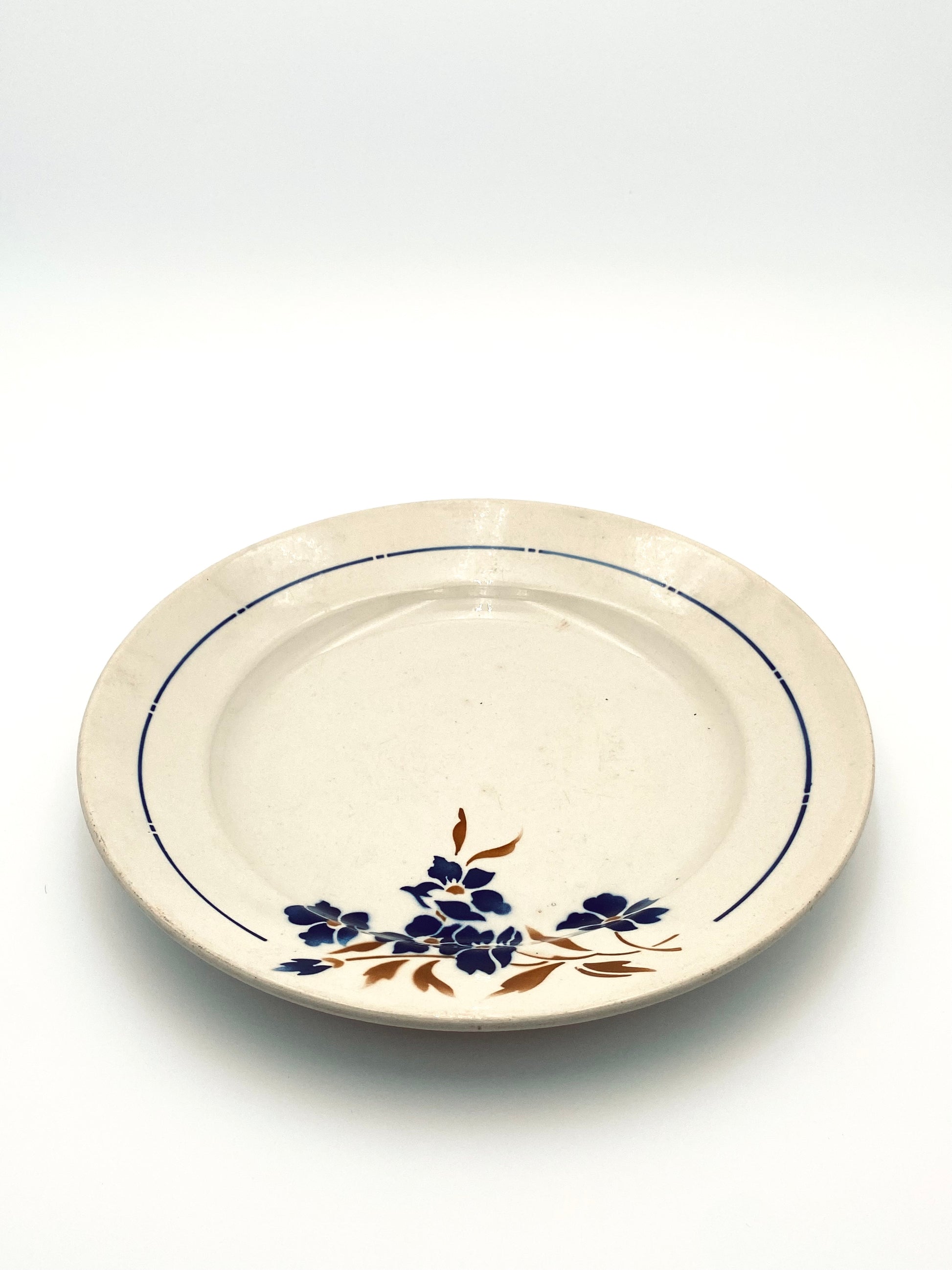 Extra groot Badonviller France bord (model Tunis) met diep blauwe bloemen. Te gebruiken als serveerschaal of als decoratief bord aan de (keuken)muur.