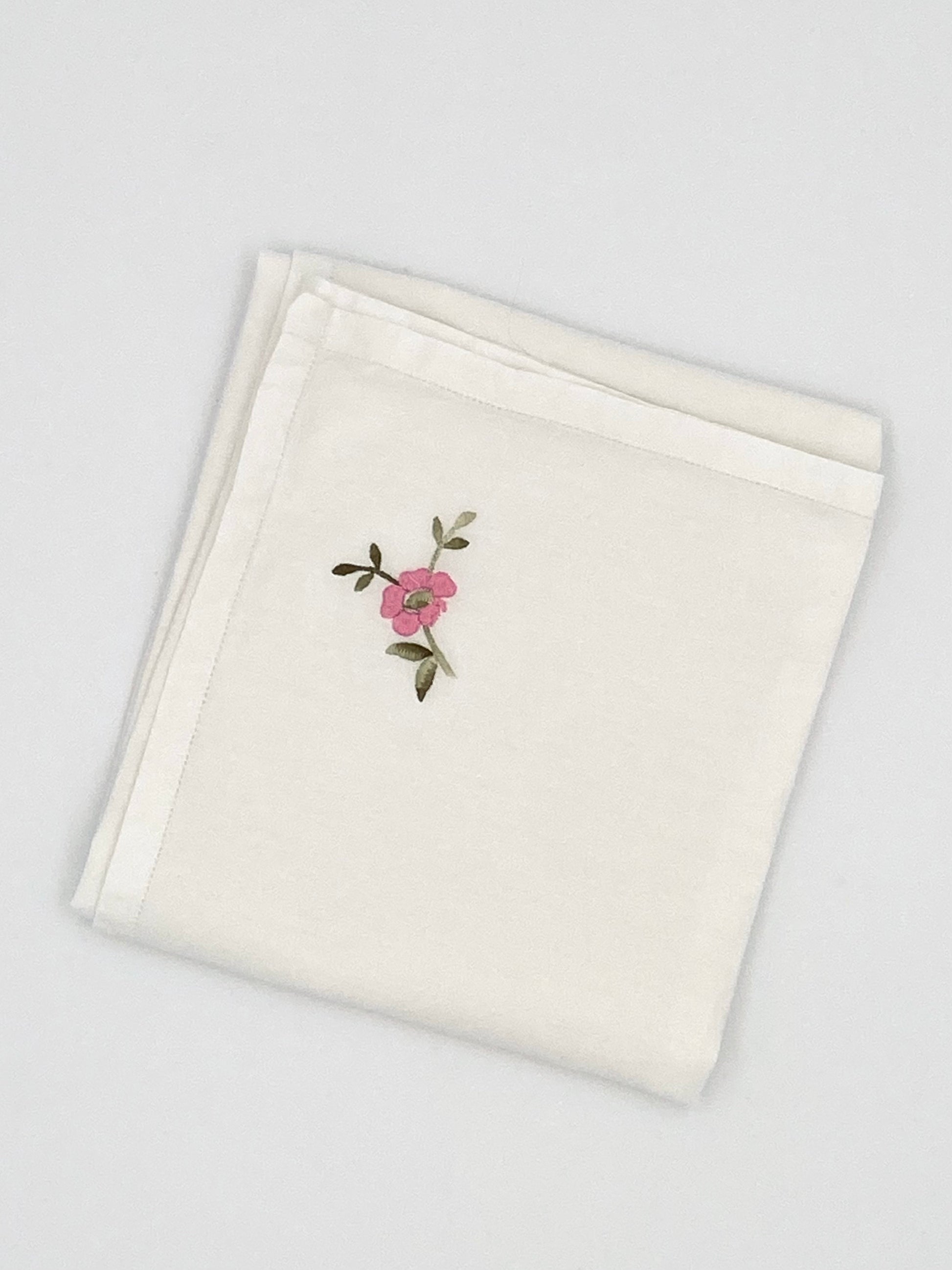 Och, dit oude, grote, handgemaakte tafelkleed van crispy katoen met een zee van kleine, met de handgeborduurde bloemen. Dat vraagt om ontbijtjes in de tuin met verse croissants en zelfgemaakte jam. Het kleed heeft 12 bijpassende servetten.