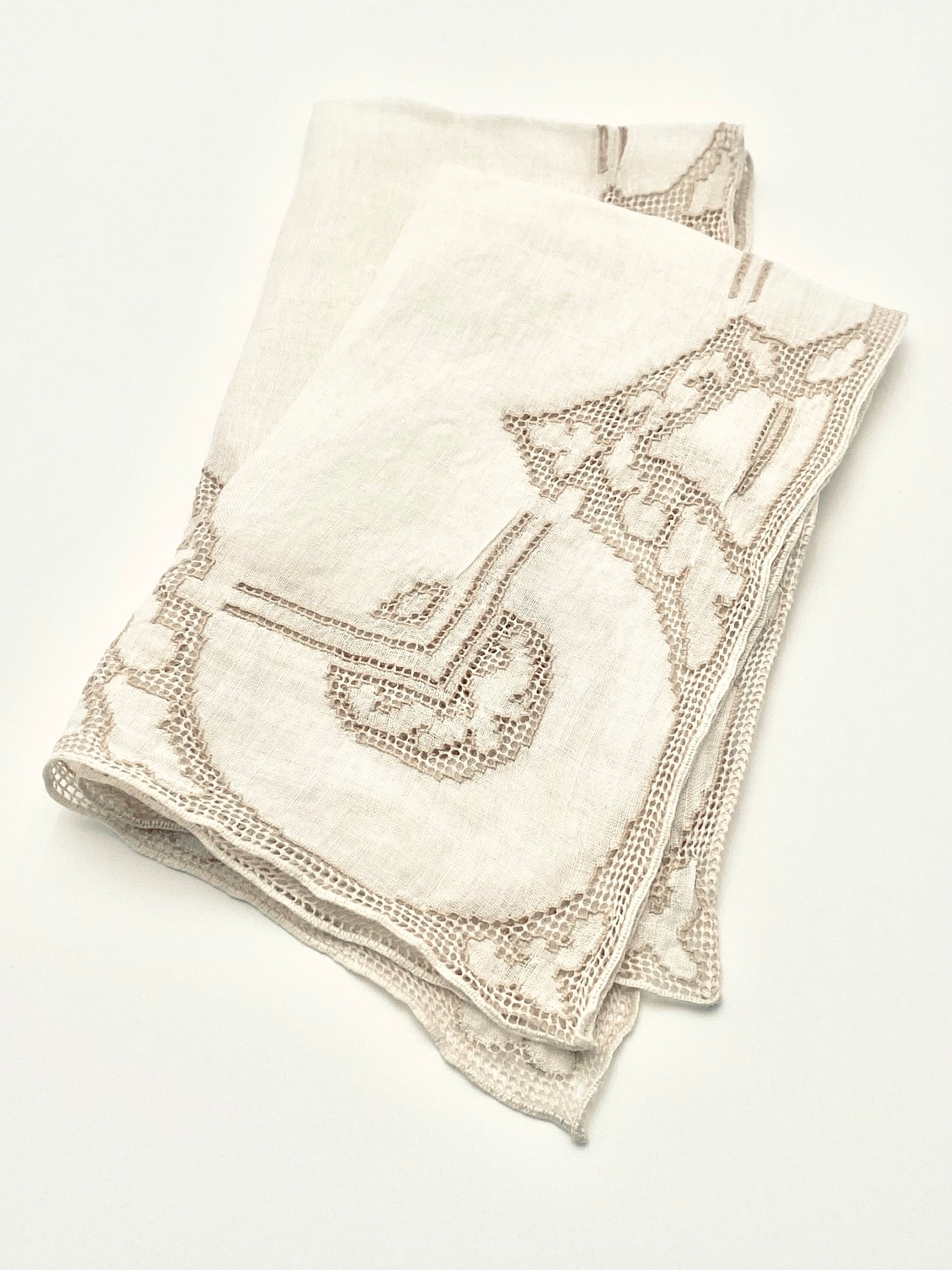 O, zie je het al voor je? De perfect gedekte tafel met je mooiste servies en bijpassende servetten. Deze zachte linnen, opengewerkte servetten zijn zo siervol en verfijnd, dat het bijna zonde is om je mond er aan af te vegen.
