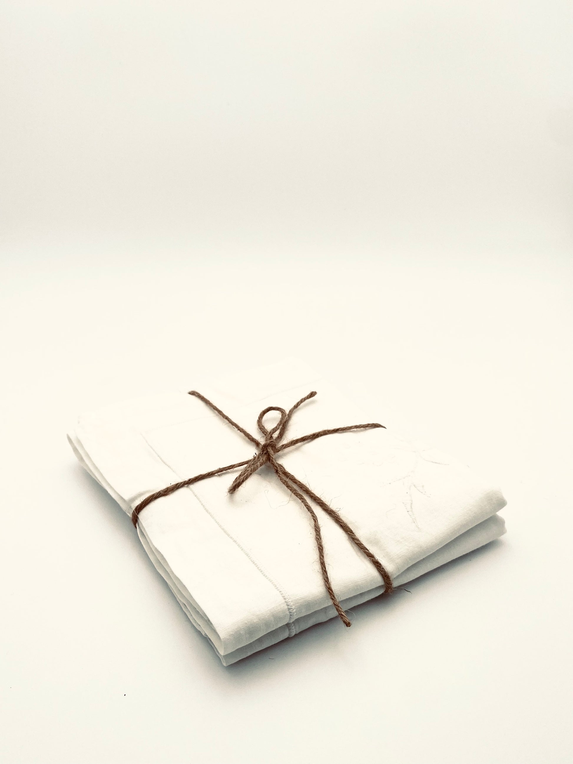 Een set van twee oude, handgemaakte katoenen kussenslopen. Met knoopsluiting en subtiel geborduurd.