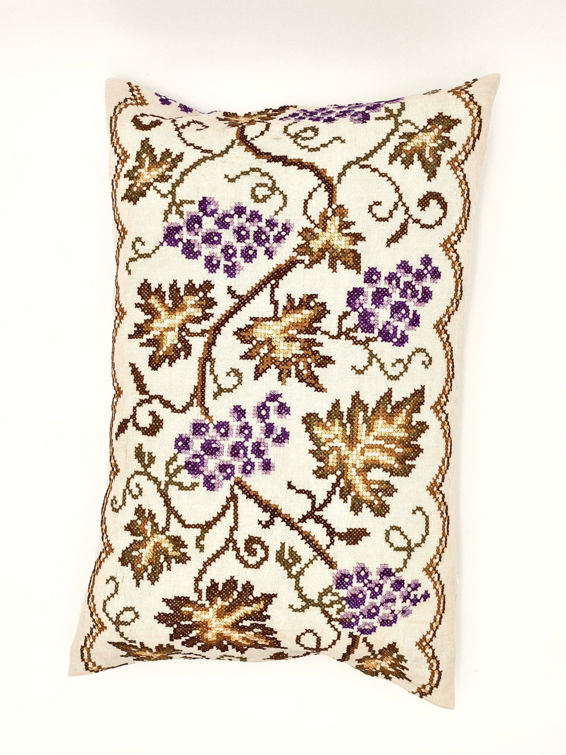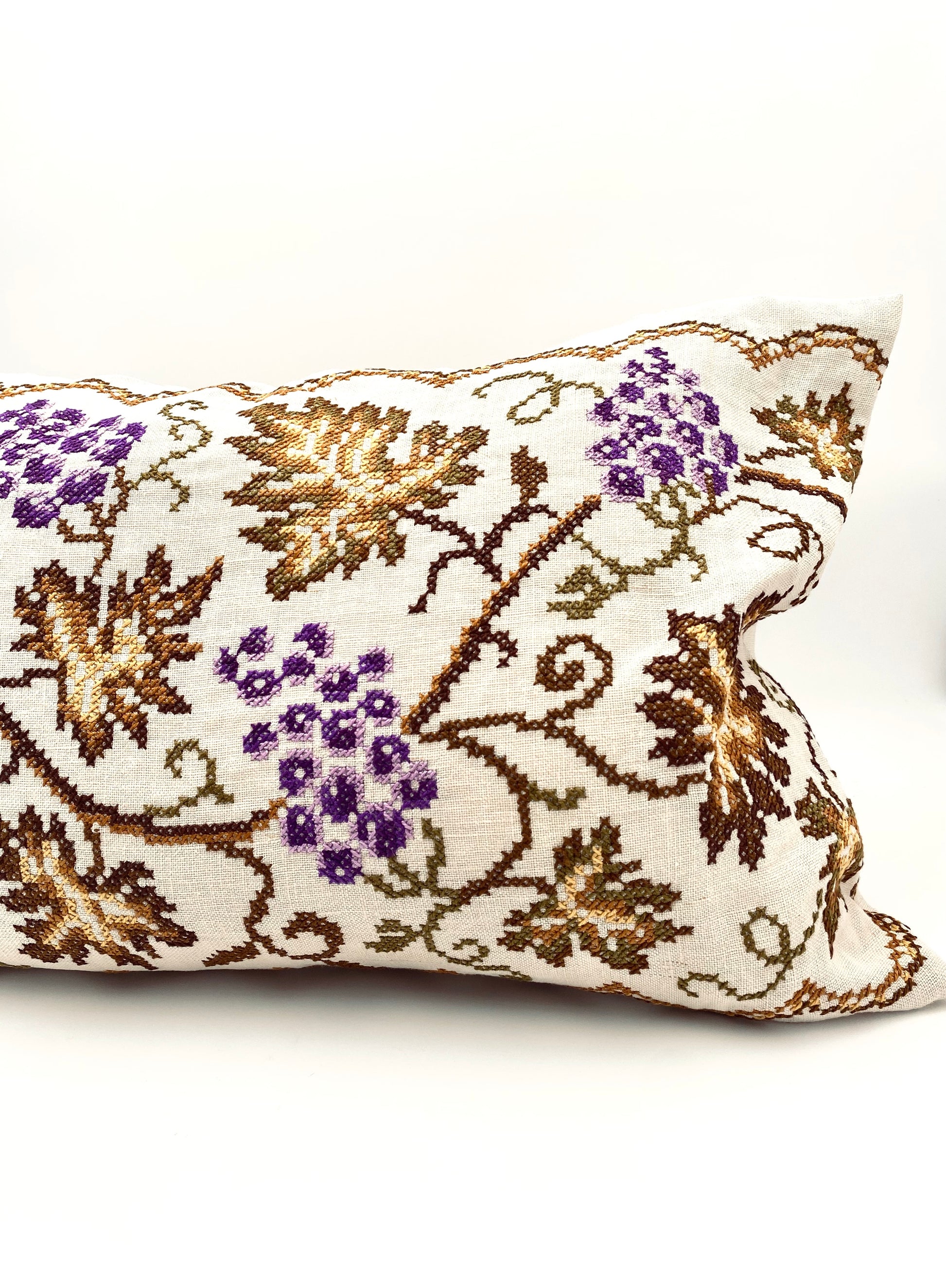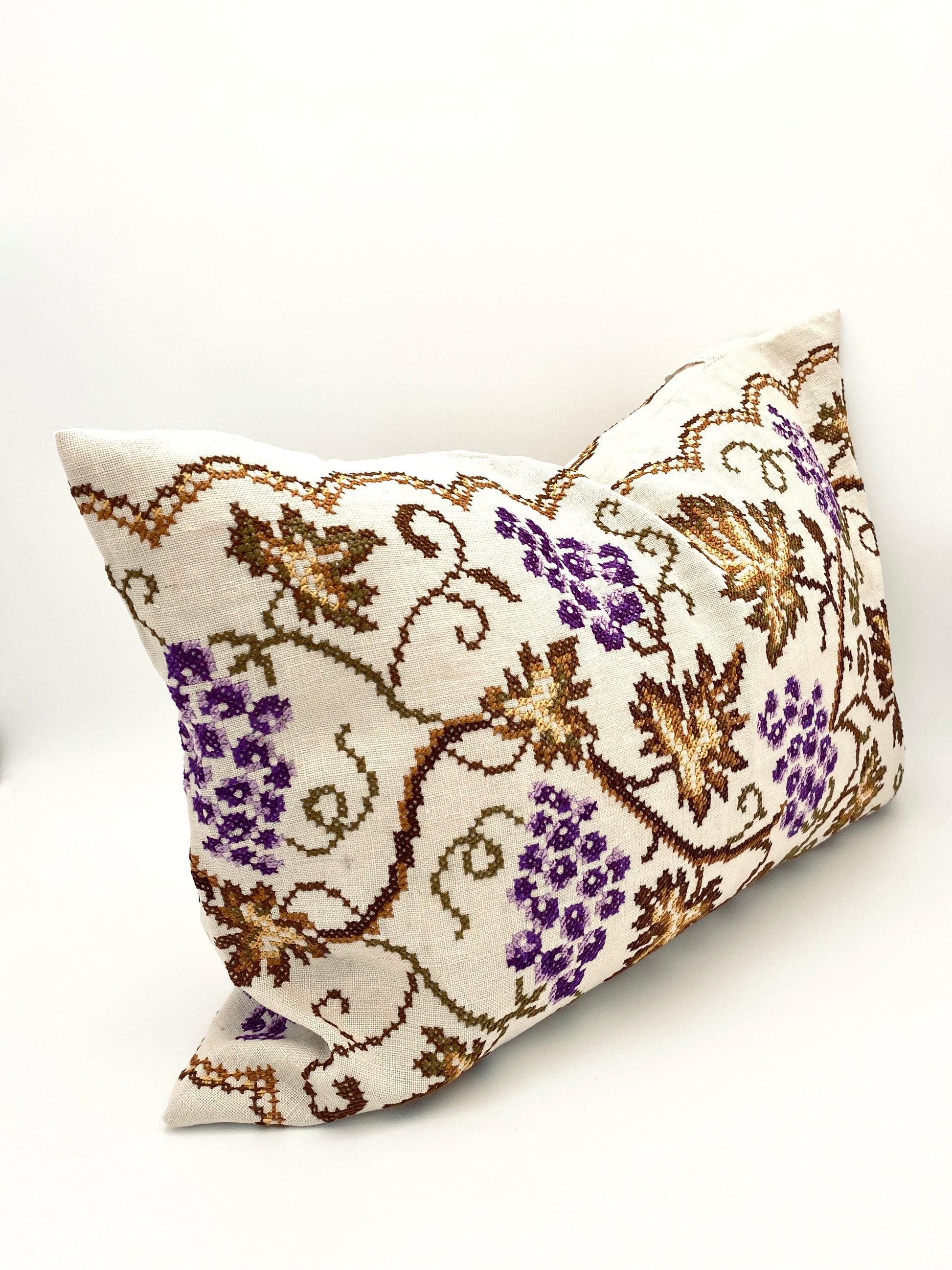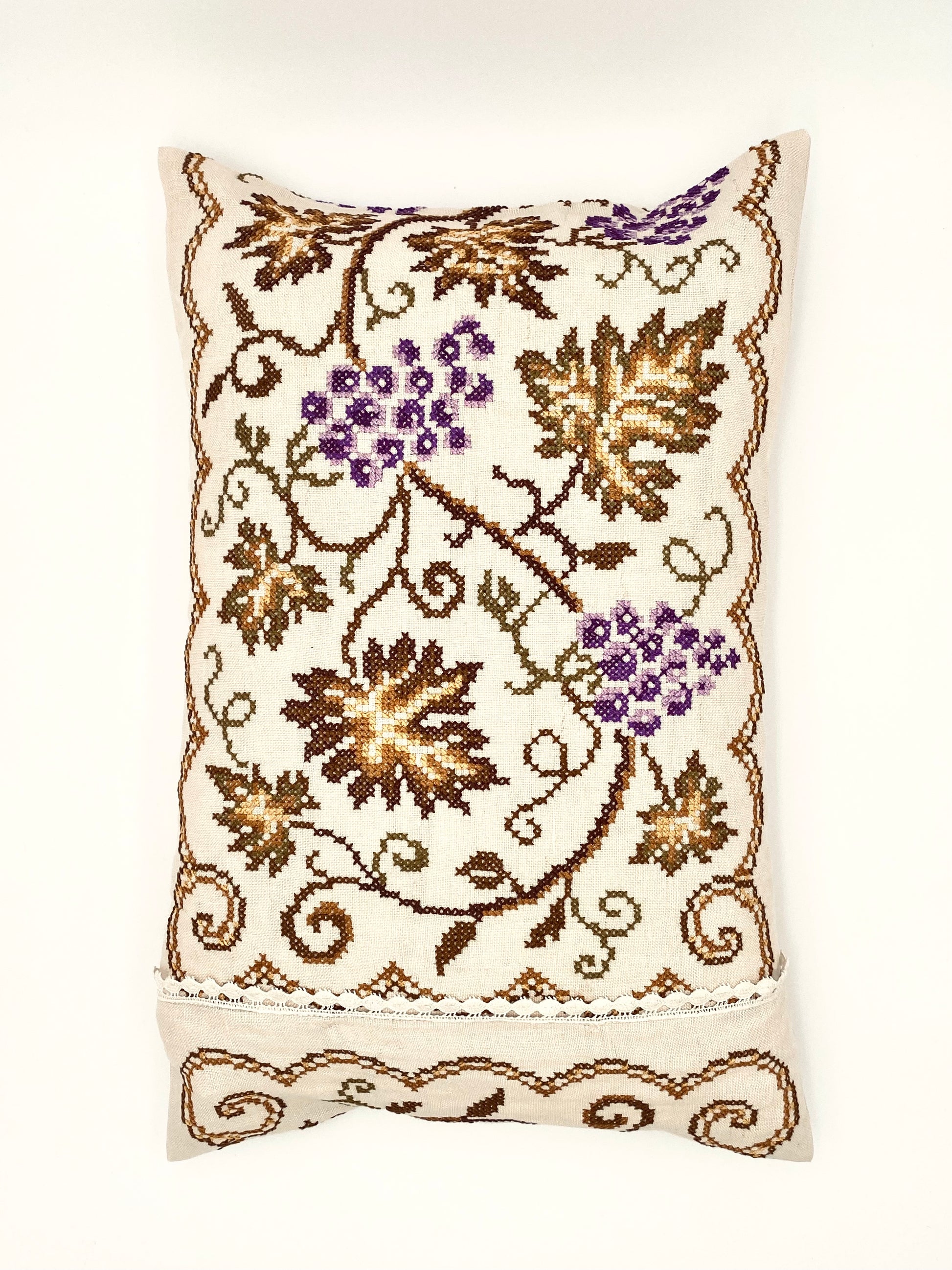 Handgeborduurd en van oud linnen gemaakt. Deze kussensloop is een waar pronkstuk voor op de bank, in de stoel, op je bed of waar je het kussen ook maar neer wil leggen. Wij zouden het kussen vooral in het zicht leggen, om er vooral veel en vaak naar te kijken.