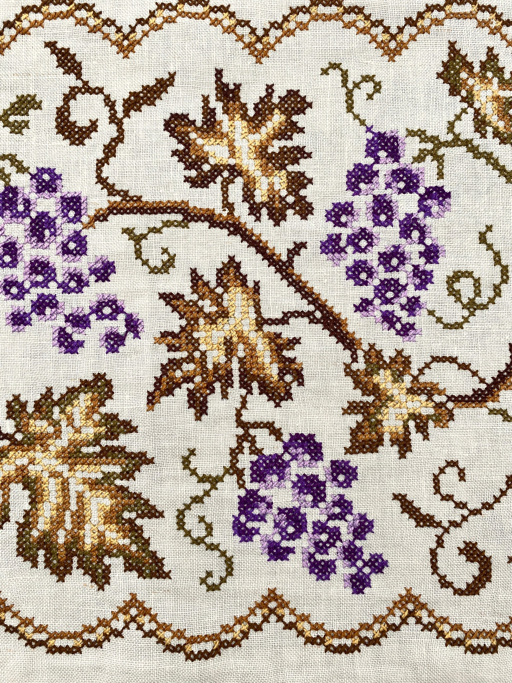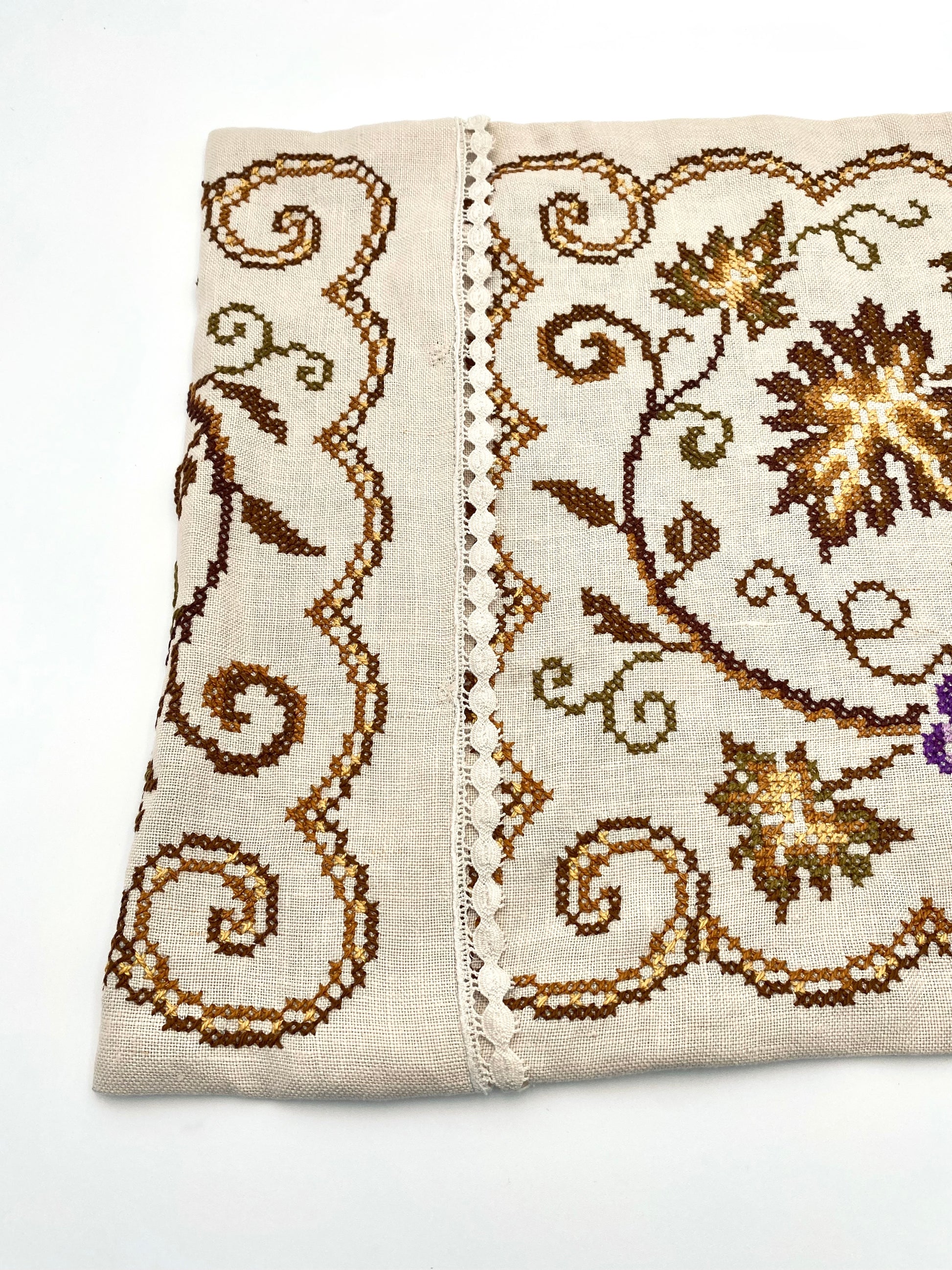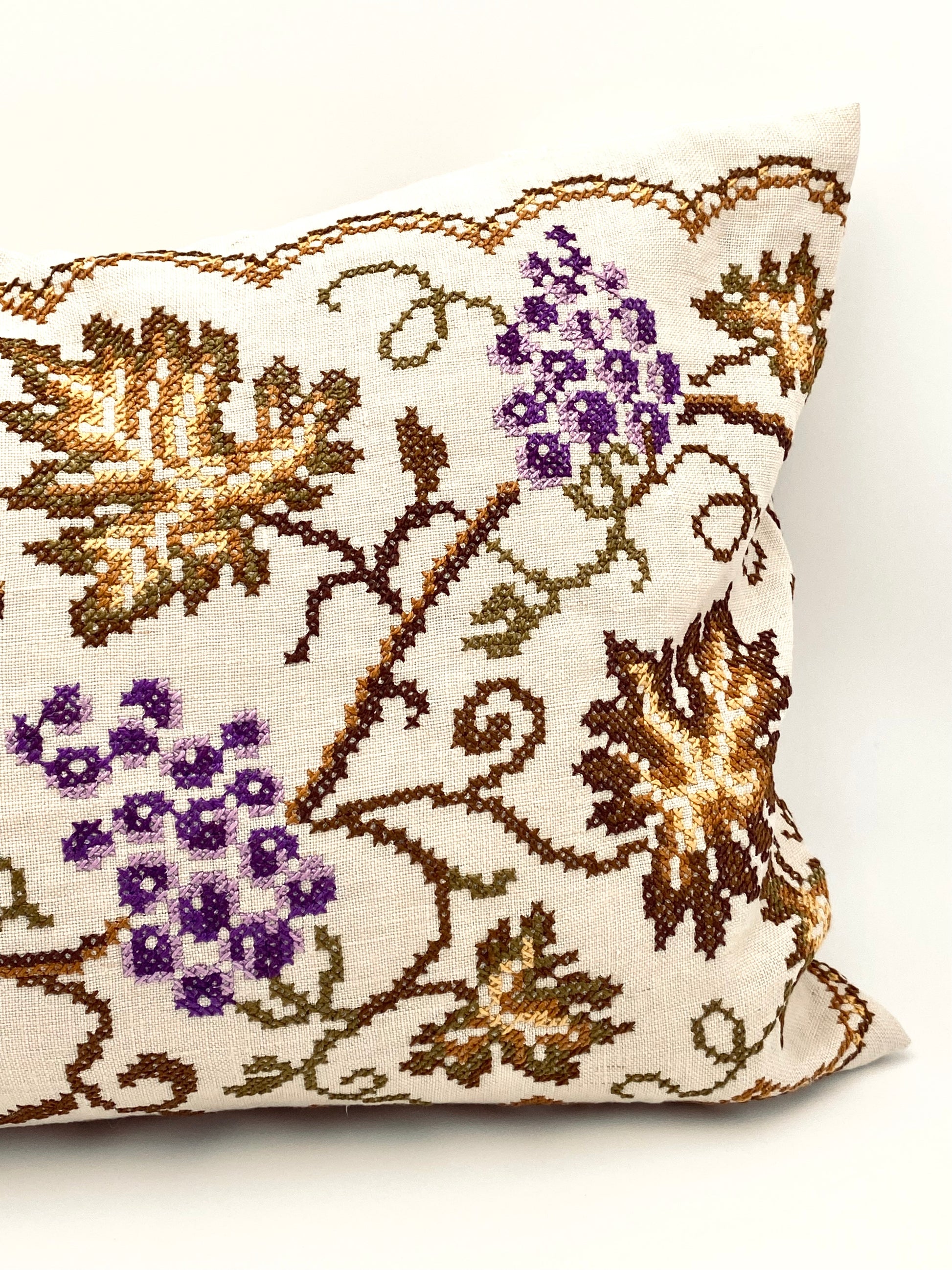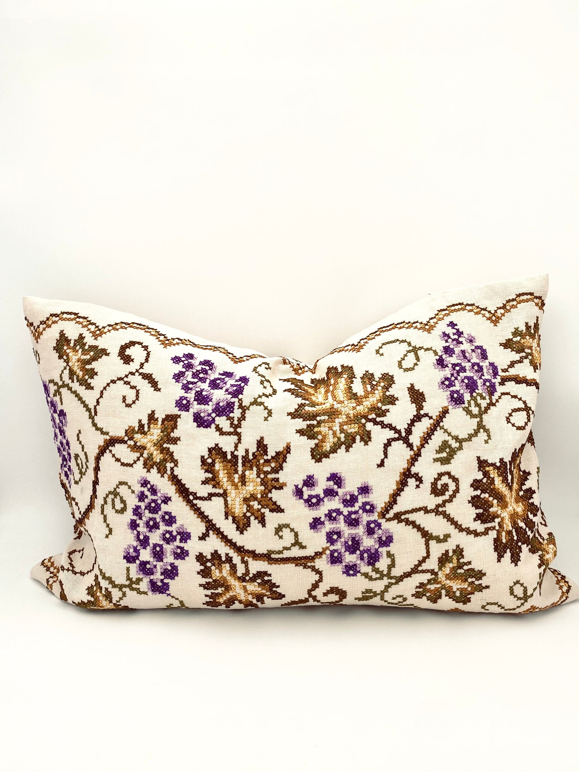 Handgeborduurd en van oud linnen gemaakt. Deze kussensloop is een waar pronkstuk voor op de bank, in de stoel, op je bed of waar je het kussen ook maar neer wil leggen. Wij zouden het kussen vooral in het zicht leggen, om er vooral veel en vaak naar te kijken.