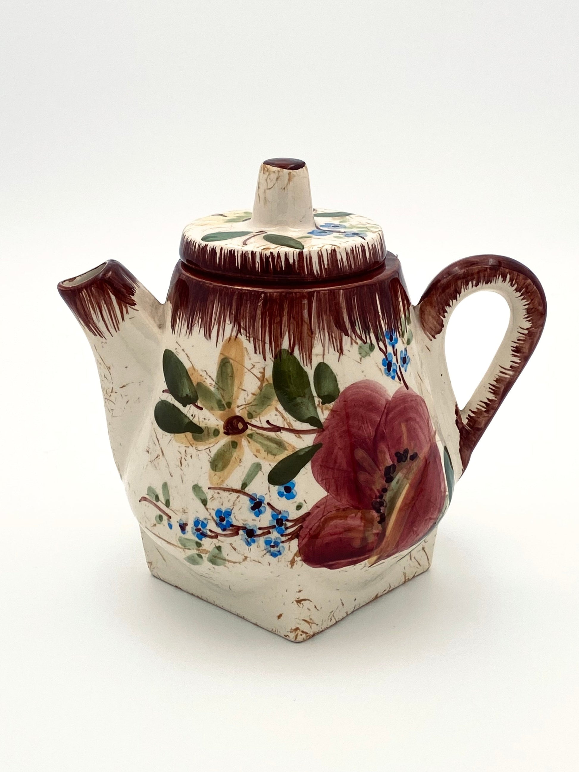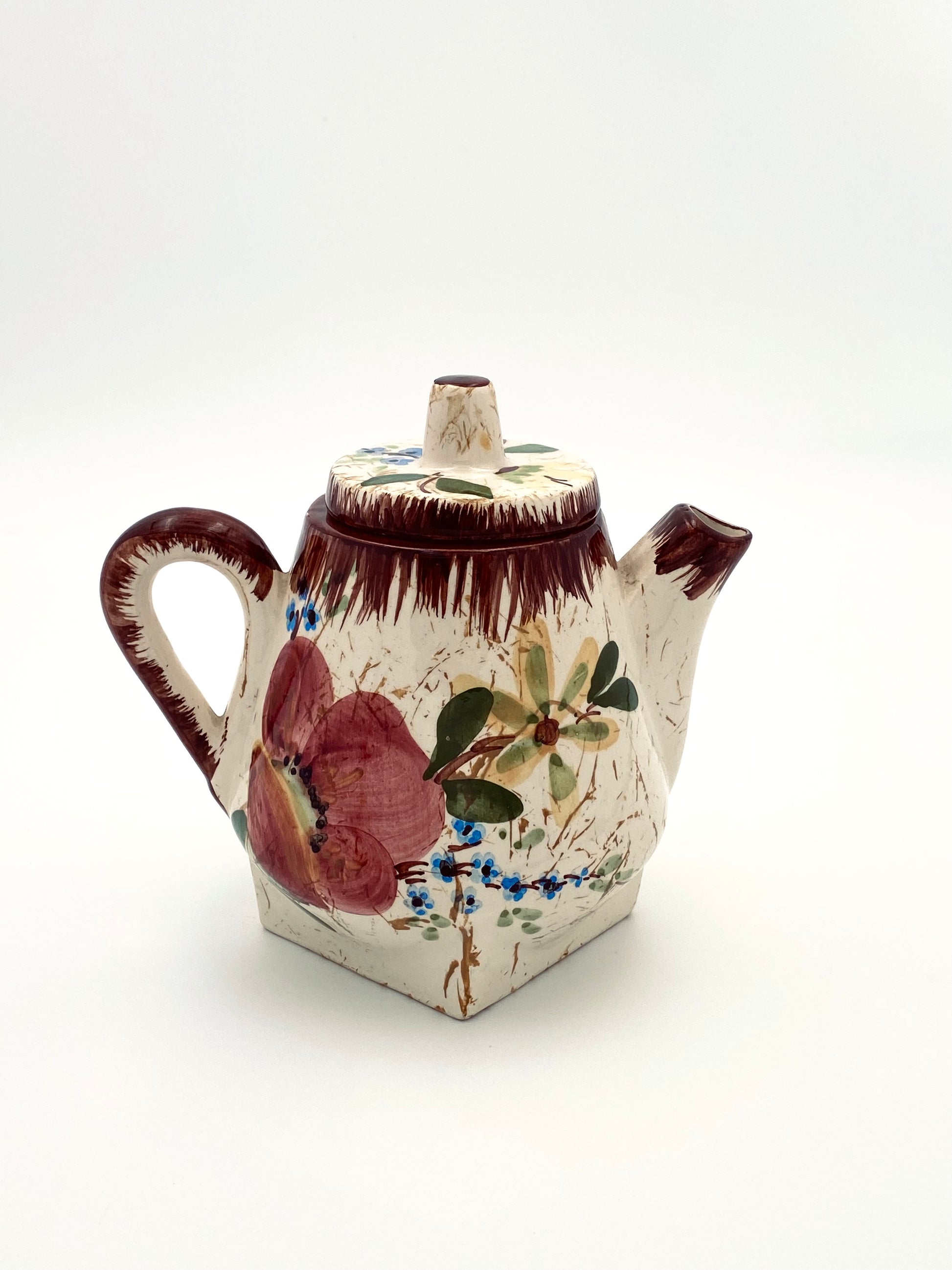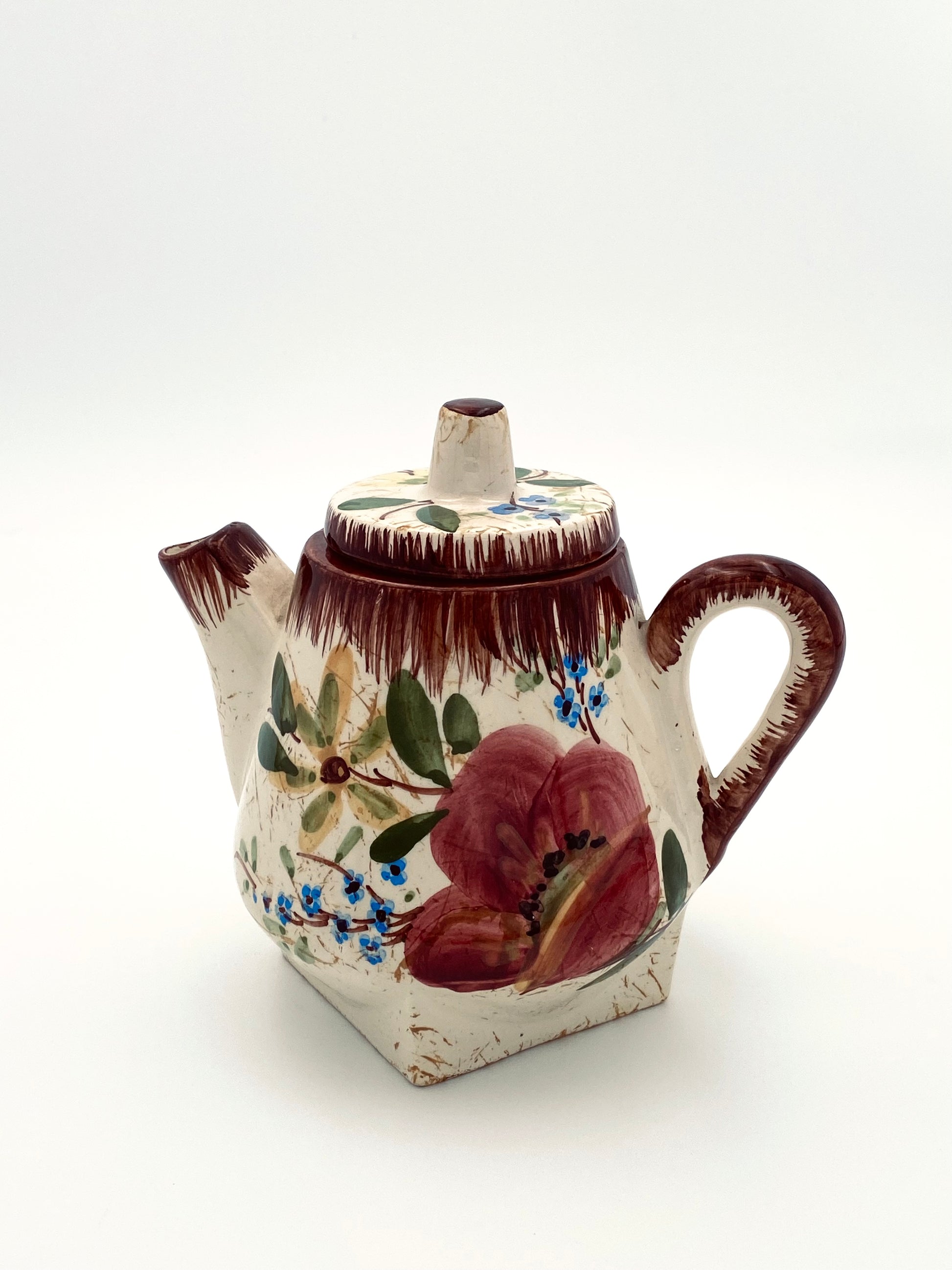 Och dit theepotje. Zo lief, zo knap. De kleuren, die handbeschilderde bloemen, die vierkante onderkant. En als je het zonde vindt om het theepotje te gebruiken, dan kan het nog altijd een pronkstuk in je interieur zijn.