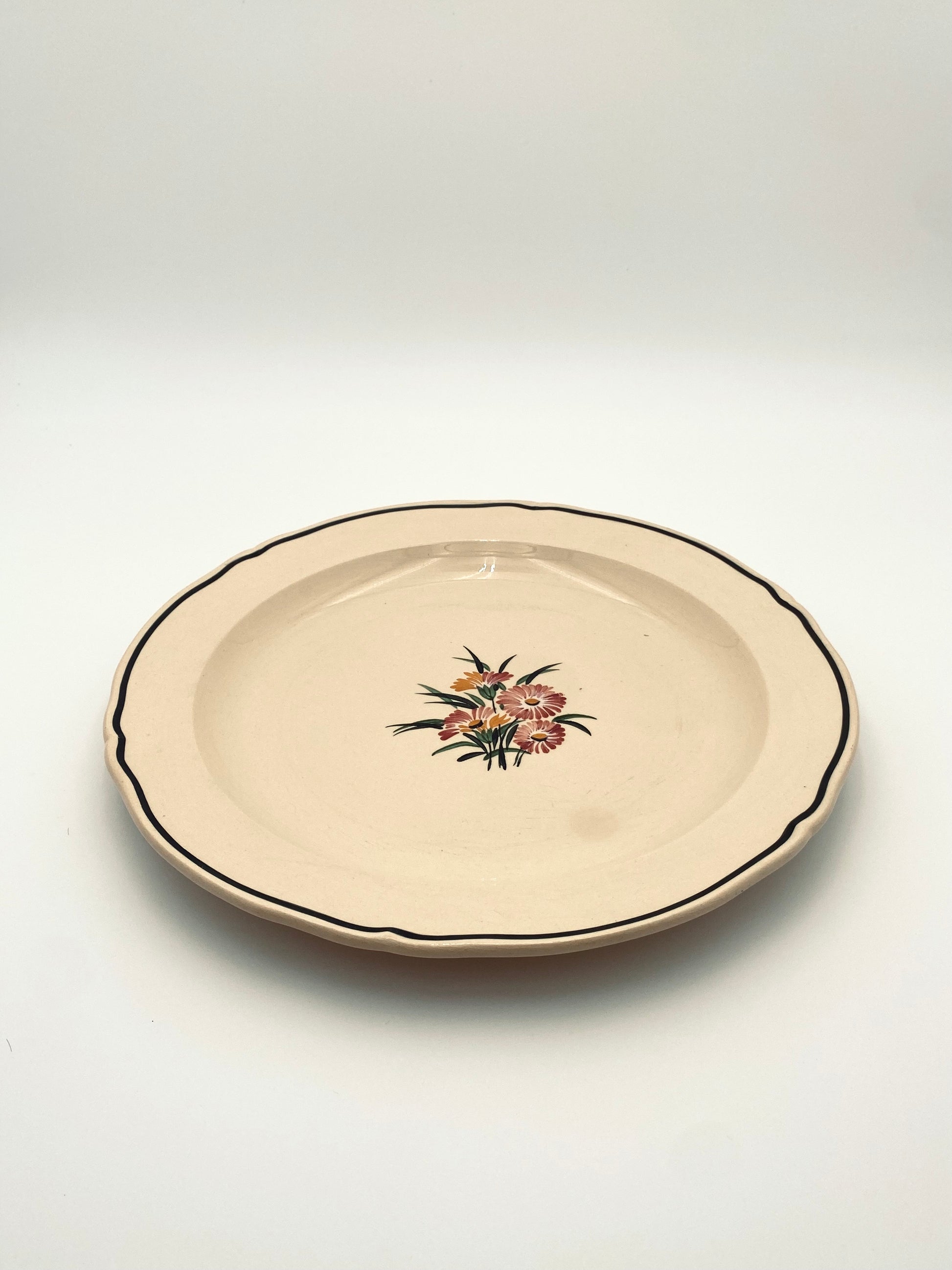 Groot formaat Gien France Butterfly bord met handbeschilderde bloemen. Mooi als serveerschaal op tafel of als decoratie aan de (keuken)muur.