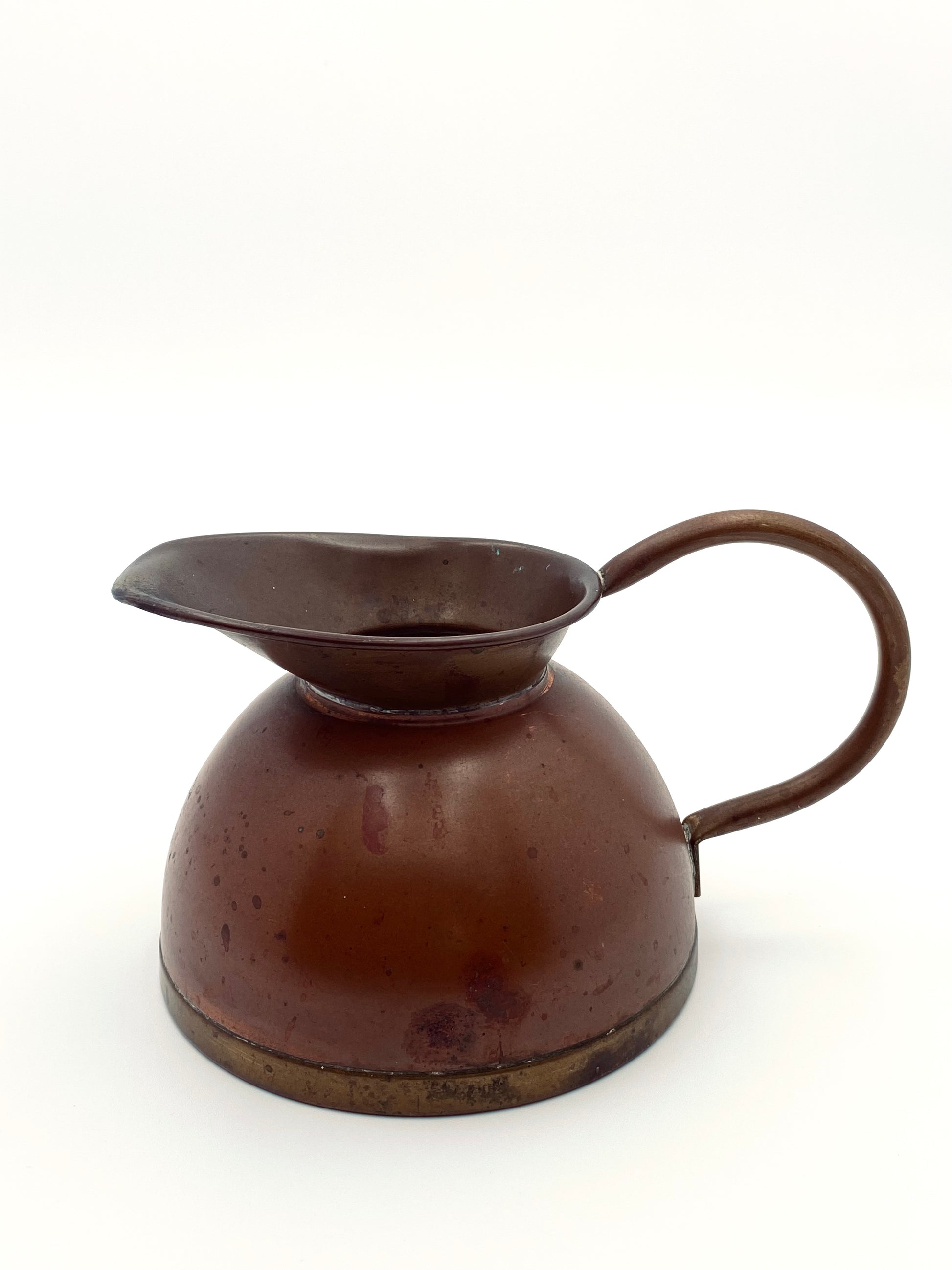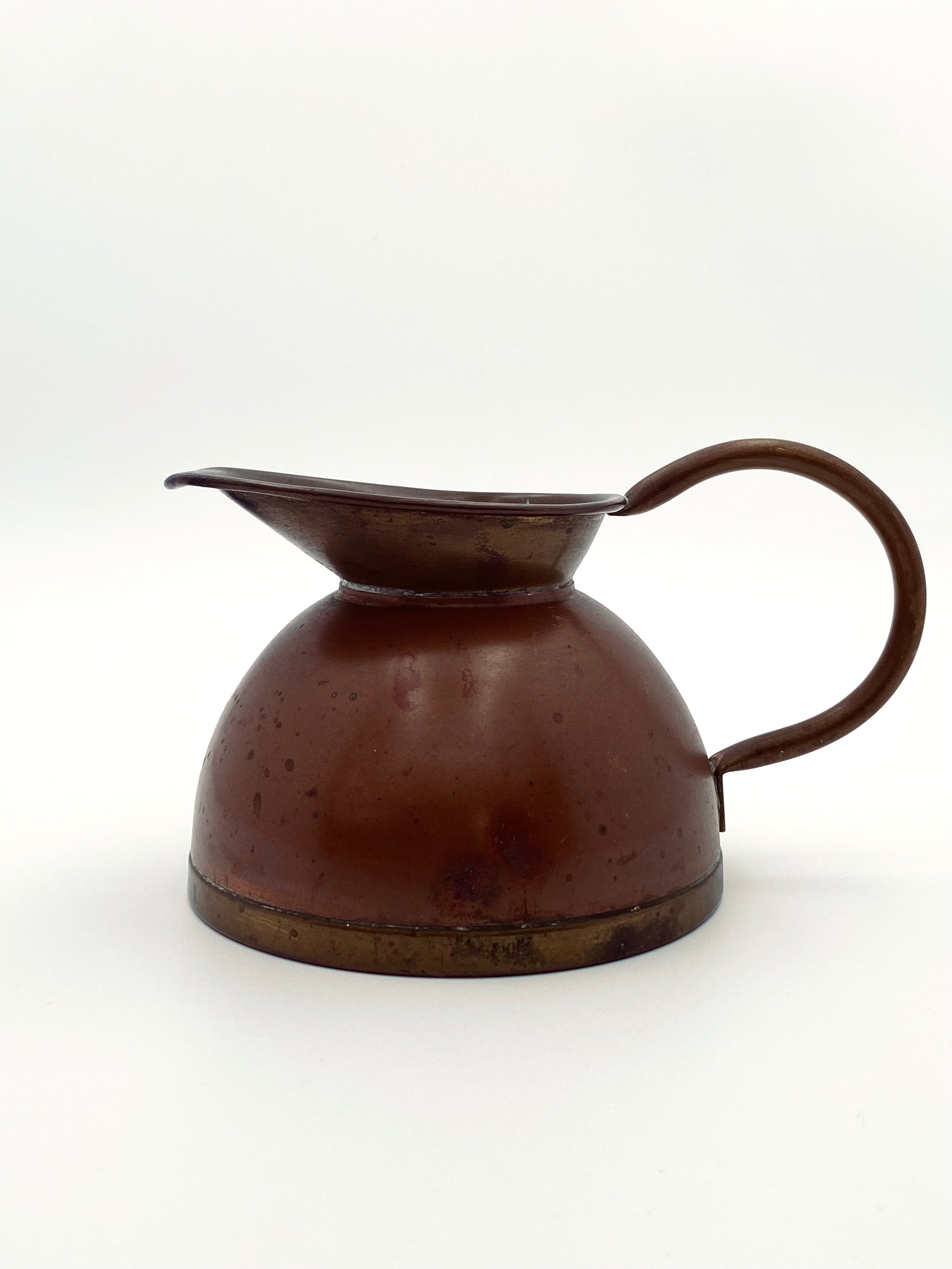 Lief, klein, handig schenkkannetje van koper dat je ook heel goed als gieter kan gebruiken.