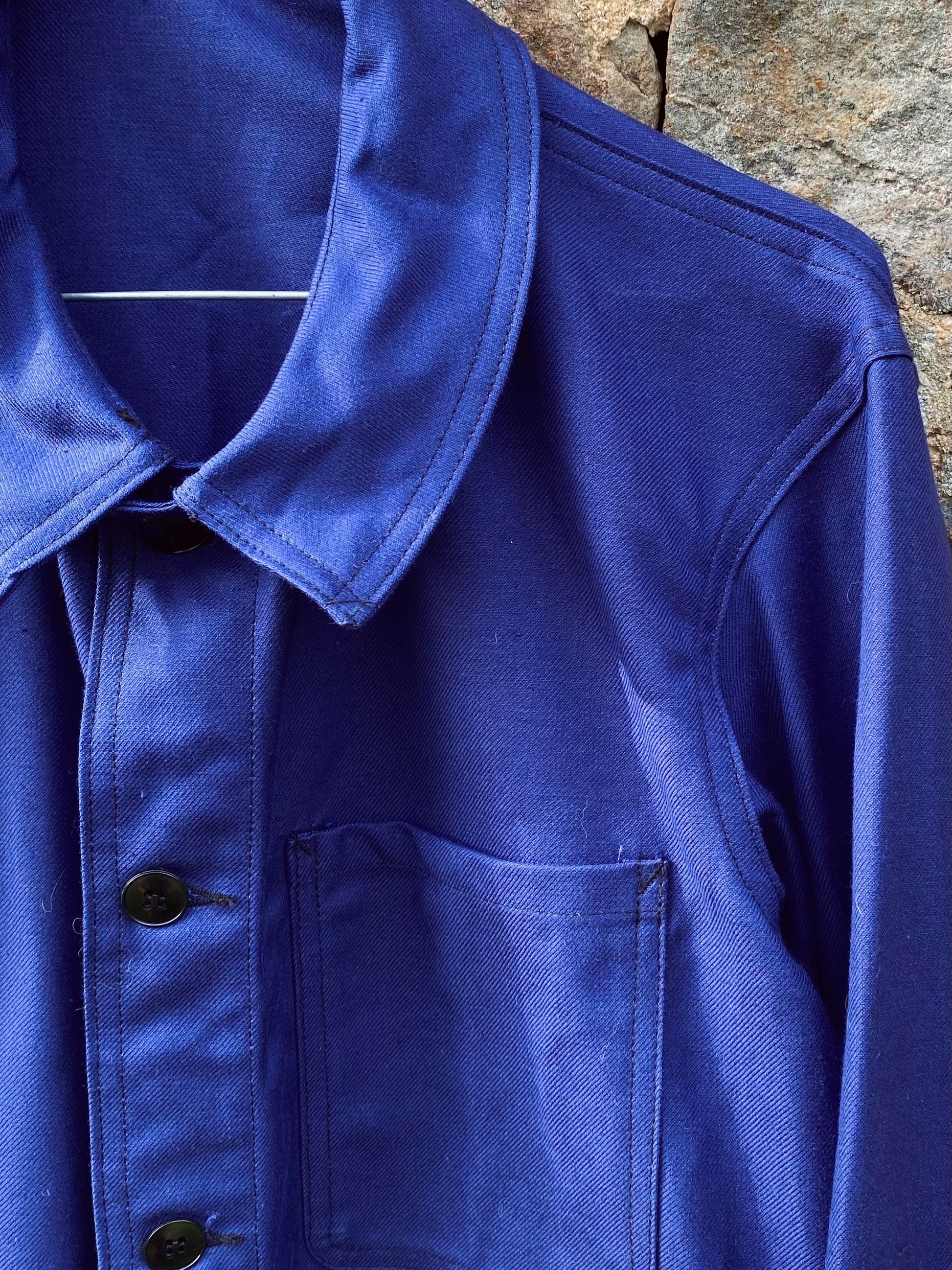 Het bleu de travail jasje in een klassiek Frans werkjasje dat vooral werd en nog steeds wordt gedragen door boeren en ambachtslieden. Het betekent letterlijk 'werk blauw' en verwijst naar de diep blauwe kleur (indigo of kobalt). Het jasje is inmiddels uitgegroeid tot een echte modeklassieker. Het is gemaakt van stevig katoen, heeft een rechte pasvorm, knopen en zakken. Simpel, maar vol karakter en hoe ouder ze worden des te mooier ze zijn. Tip: neem een maatje groter, want beetje oversized is juist handig. Niet alleen handig als je je handen uit de mouwen steekt (in de tuin of zo), maar dan kun je er als het kouder is ook een wolletje onder dragen.