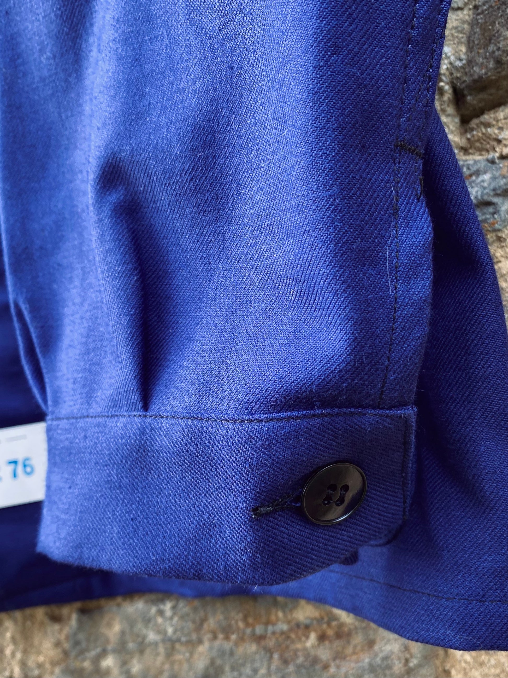 Dit indigo blauwe jasje is gemaakt van stevig katoen is een (dames)maat 42/44 (L/XL). Het jasje (waarschijnlijk begin jaren '70) is nieuw en ongedragen.