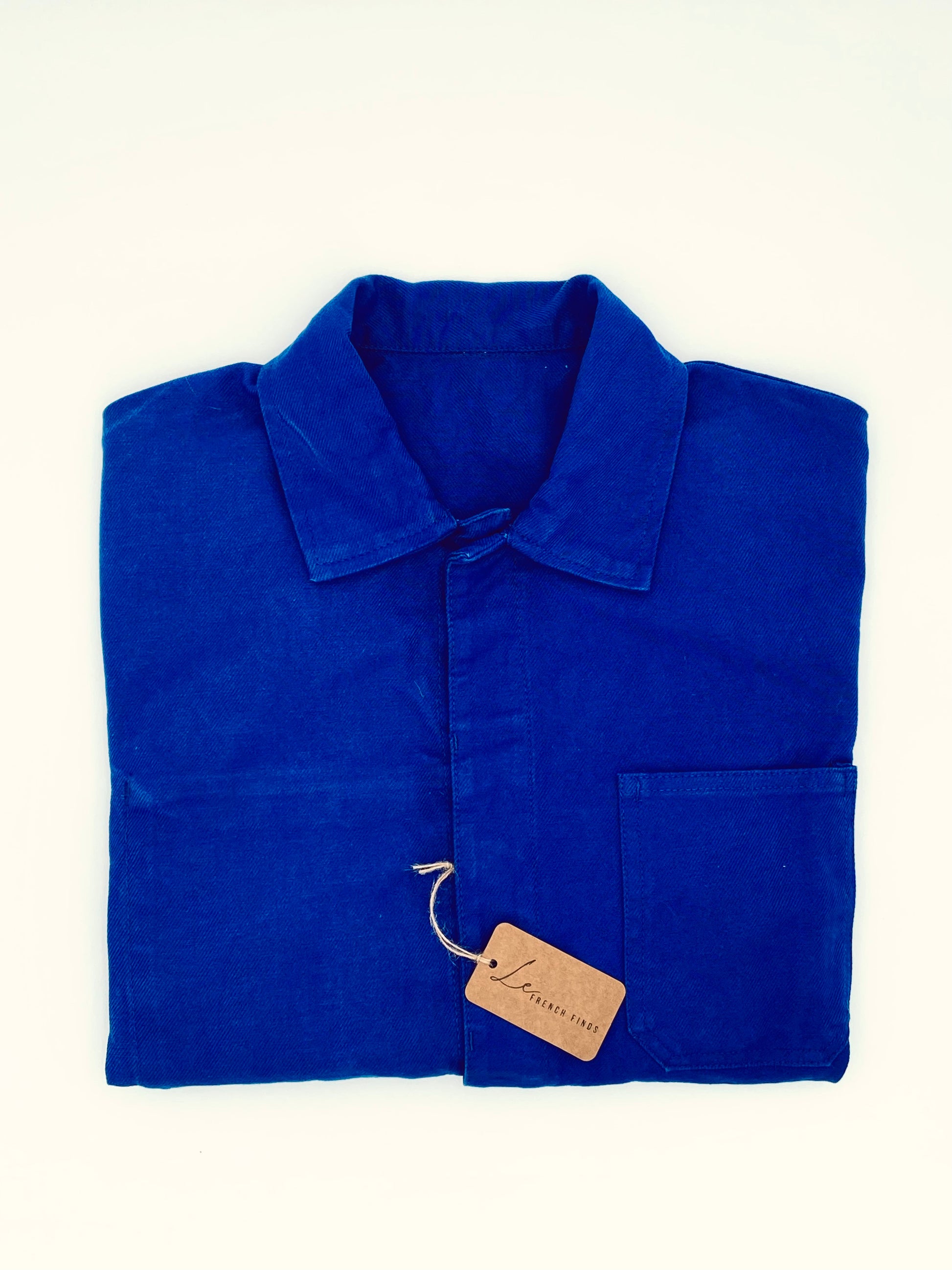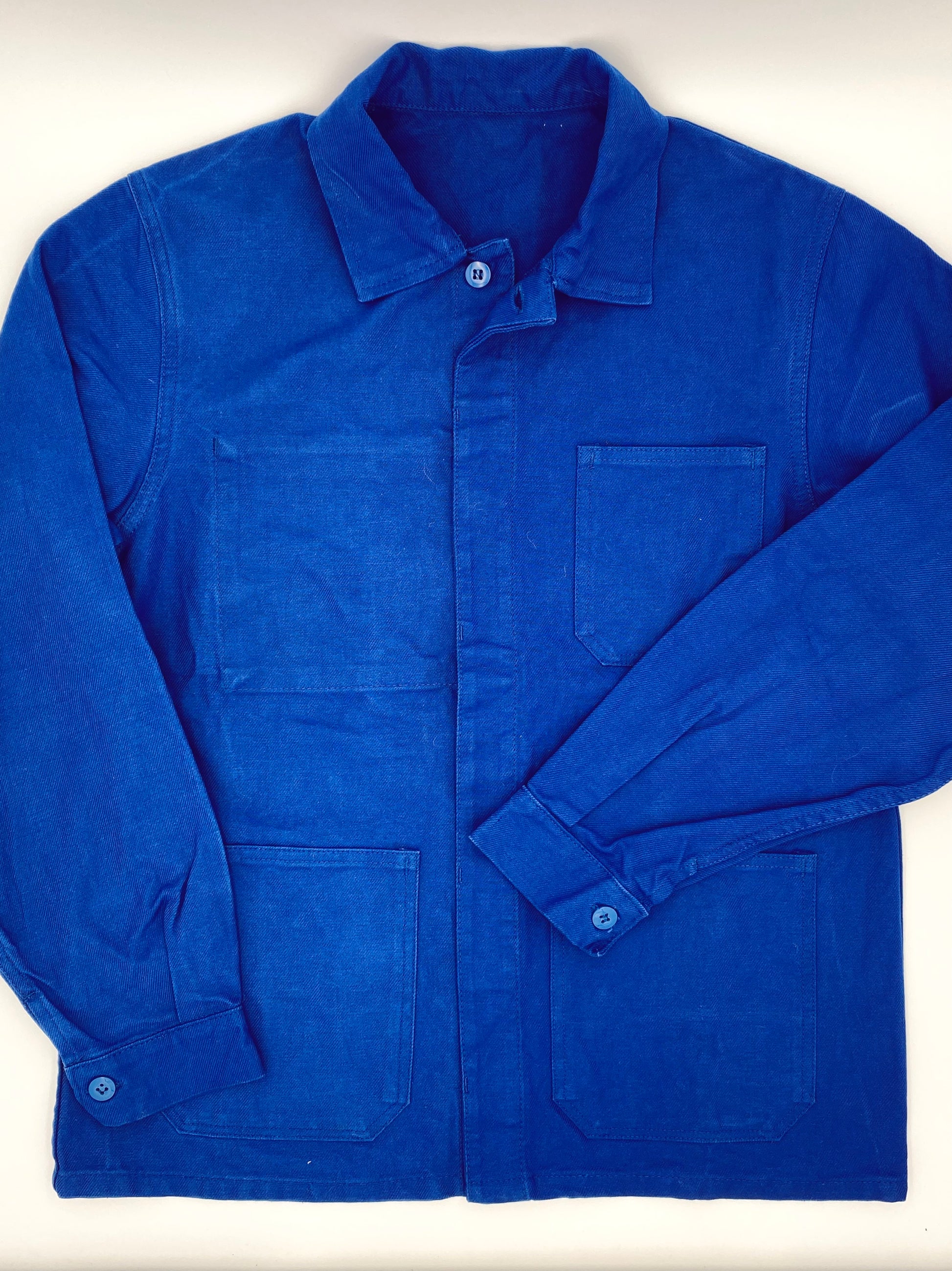 Het bleu de travail jasje in een klassiek Frans werkjasje dat vooral werd en nog steeds wordt gedragen door boeren en ambachtslieden. Het betekent letterlijk 'werk blauw' en verwijst naar de diep blauwe kleur (indigo of kobalt). Het jasje is inmiddels uitgegroeid tot een echte modeklassieker. Het is gemaakt van stevig katoen, heeft een rechte pasvorm, knopen en zakken. Simpel, maar vol karakter en hoe ouder ze worden des te mooier ze zijn.