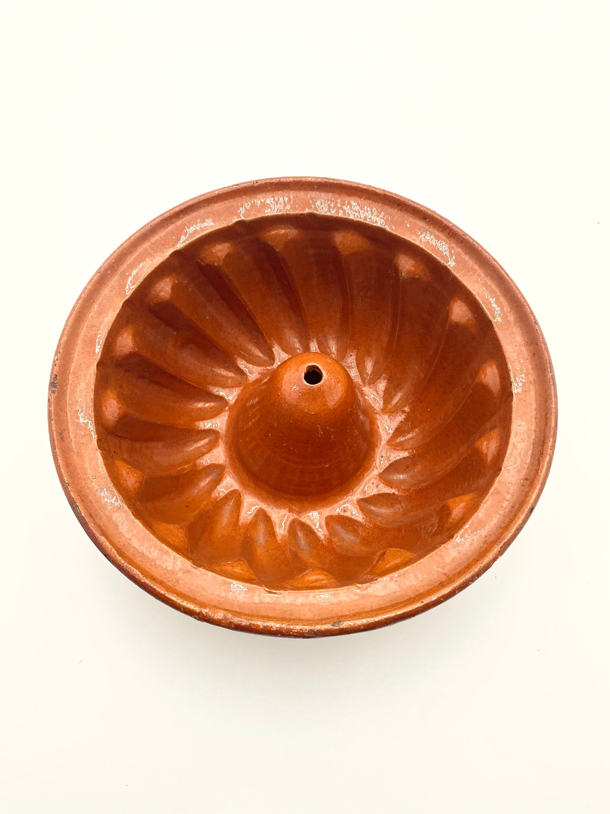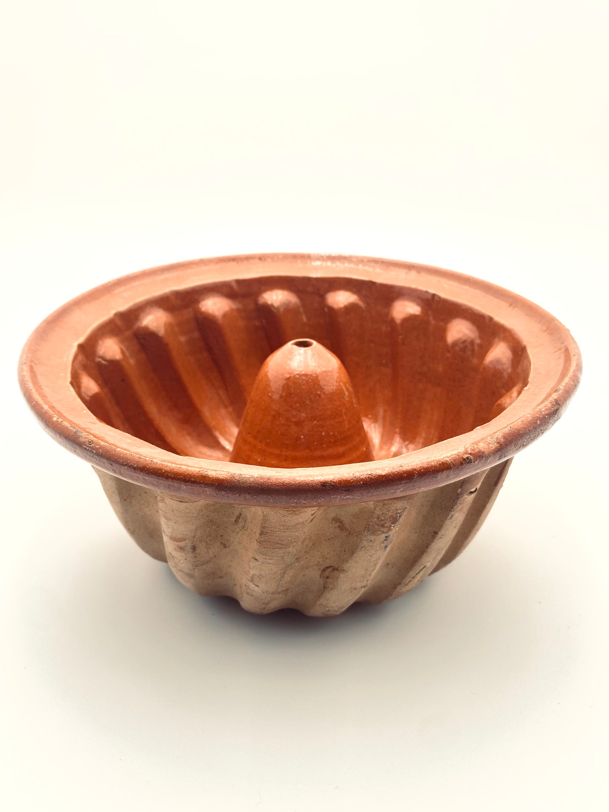Aardewerken Kouglof bakvorm met een dikke laag glazuur uit de Elzas. Kouglof klinkt misschien verre van Frans, maar is dat wel. Kouglof betekent tulband in het Elzassisch en is tevens ook de naam van een brioche die daar werd gebakken in een traditionele aardewerken vorm zoals deze.