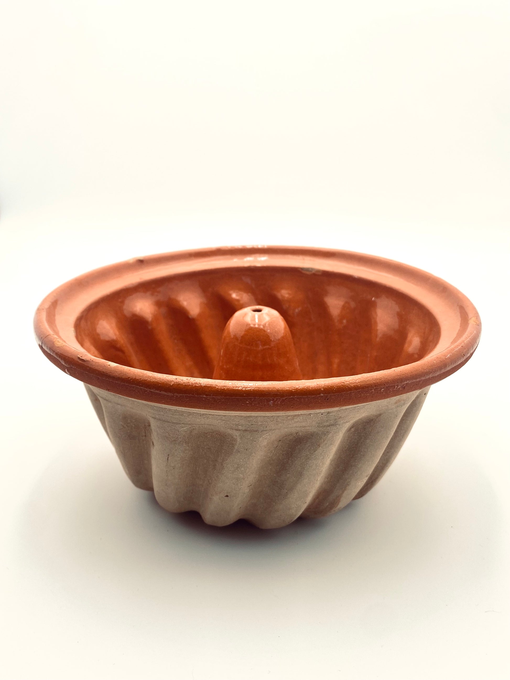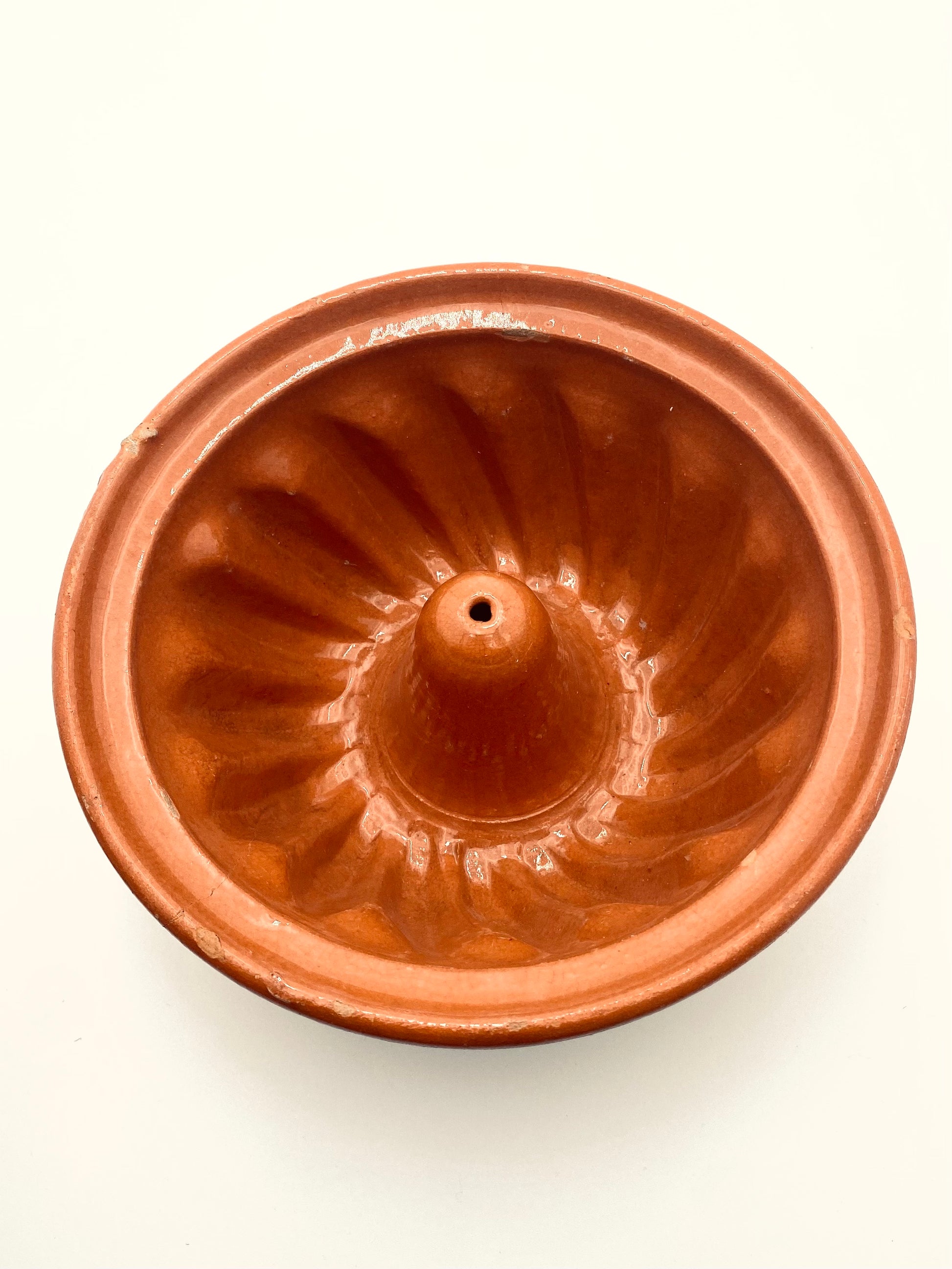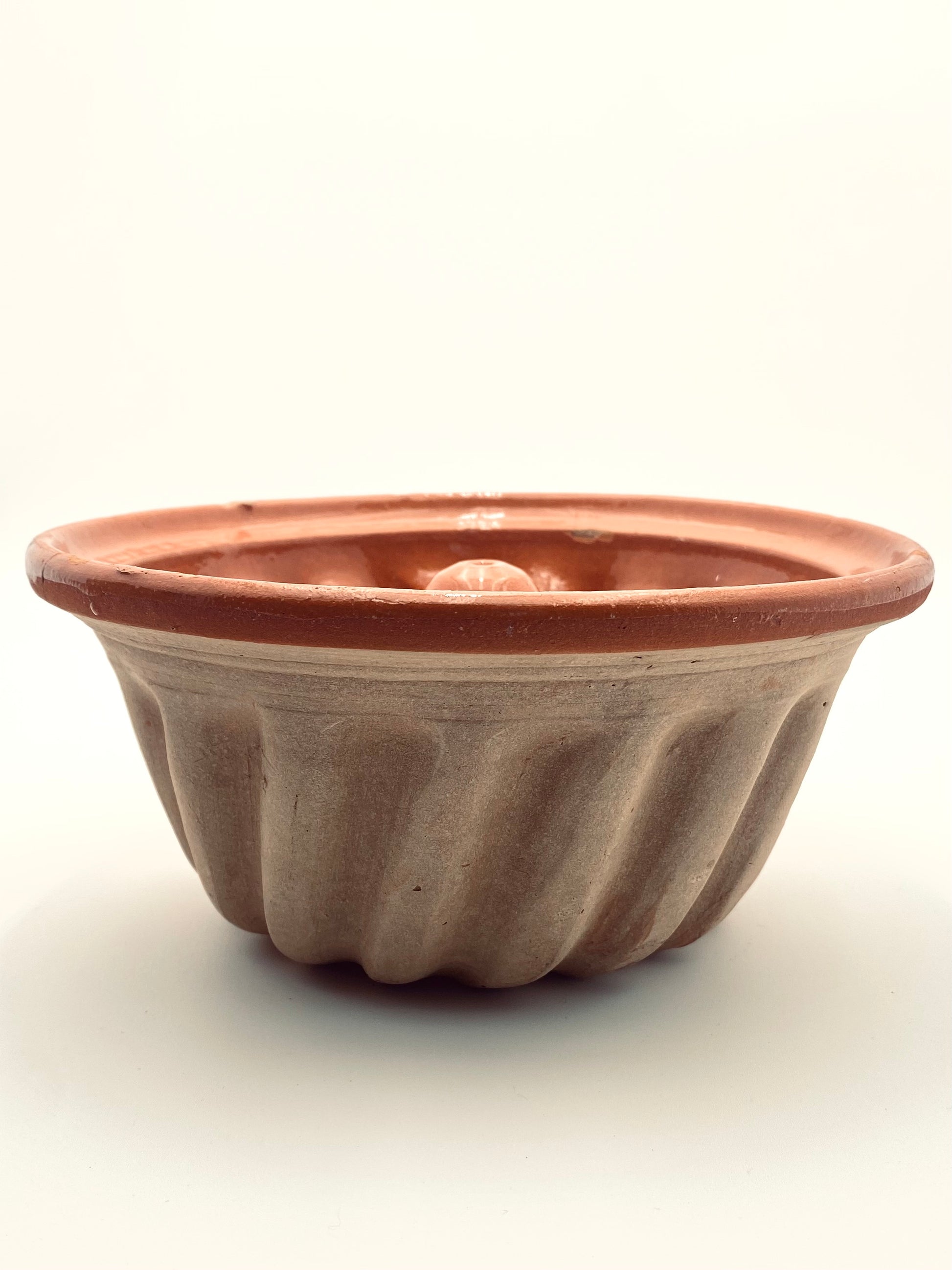 Aardewerken Kouglof bakvorm met een dikke laag glazuur uit de Elzas. Kouglof klinkt misschien verre van Frans, maar is dat wel. Kouglof betekent tulband in het Elzassisch en is tevens ook de naam van een brioche die daar werd gebakken in een traditionele aardewerken vorm zoals deze.