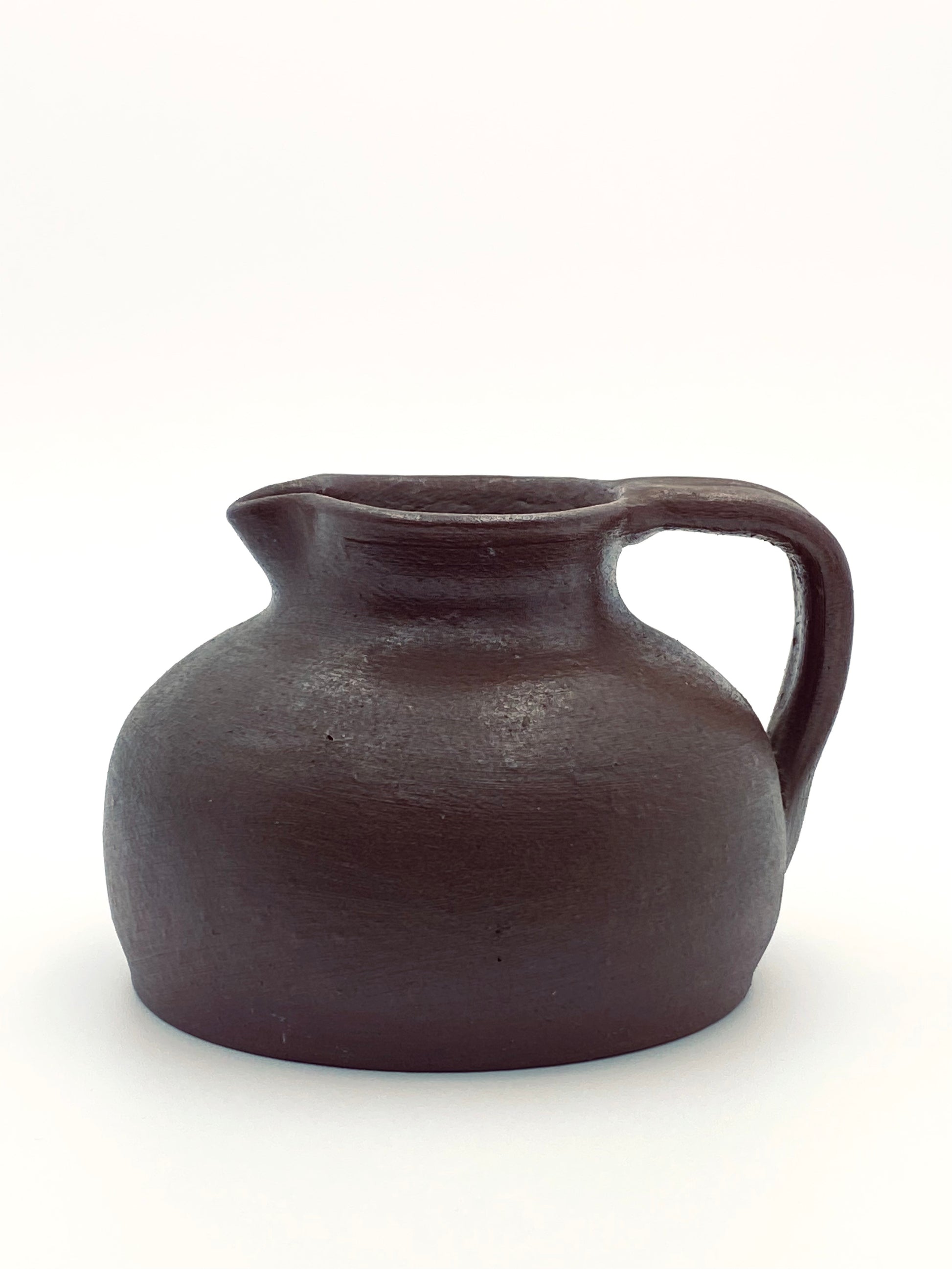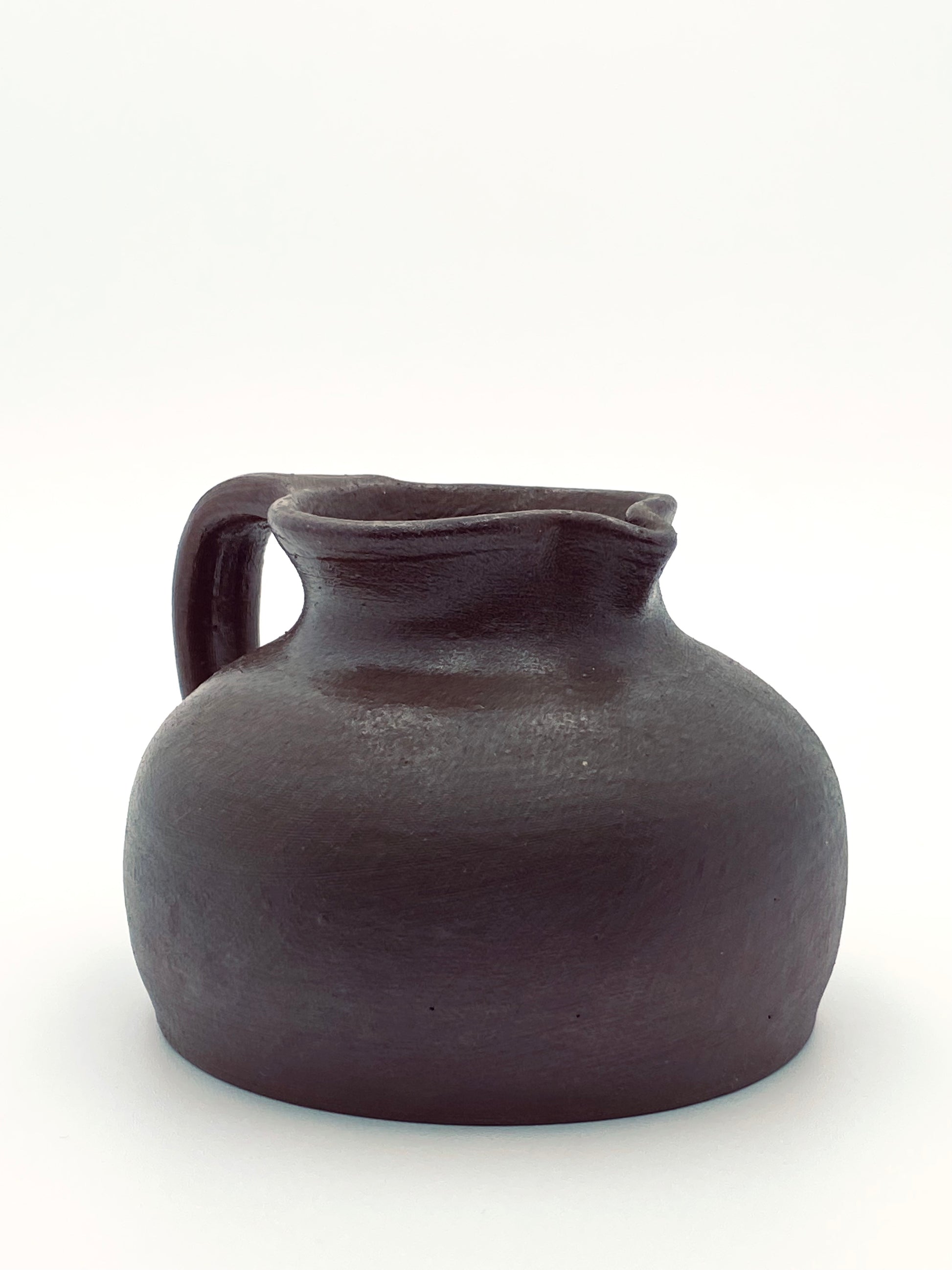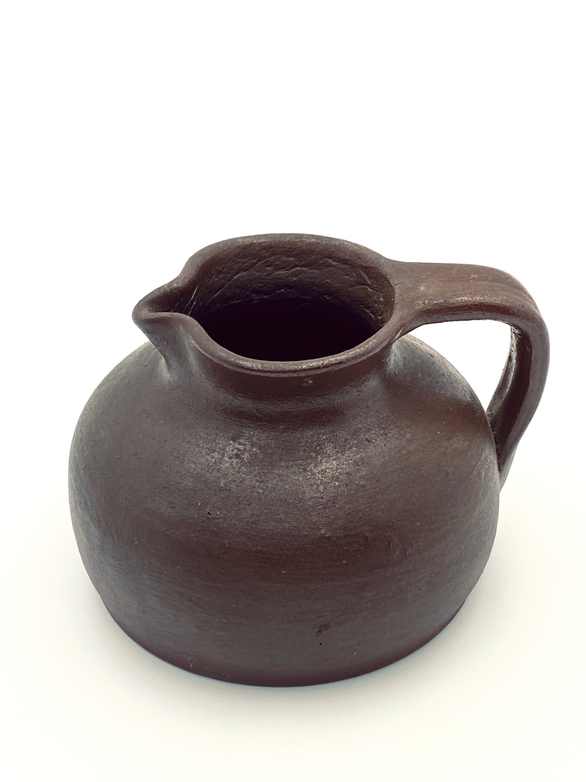 Kleine, oude, compacte, handgemaakte kan. Handig als klein schenkkannetje op je gedekte tafel, in de keuken of als pronkstuk ergens in je huis. De kan heeft een hoogte van 9,5cm en doorsnede van 13 op het bolste punt.