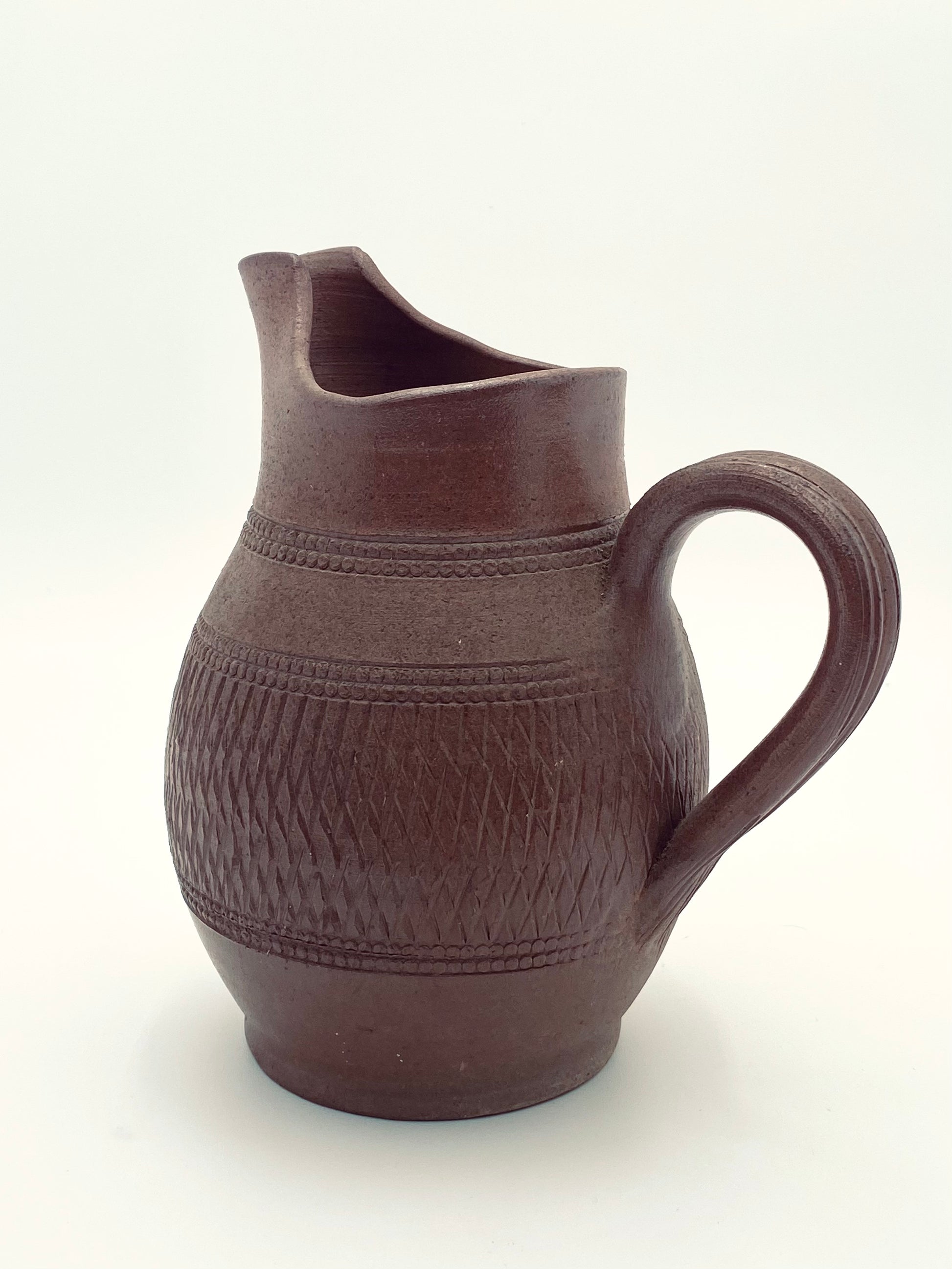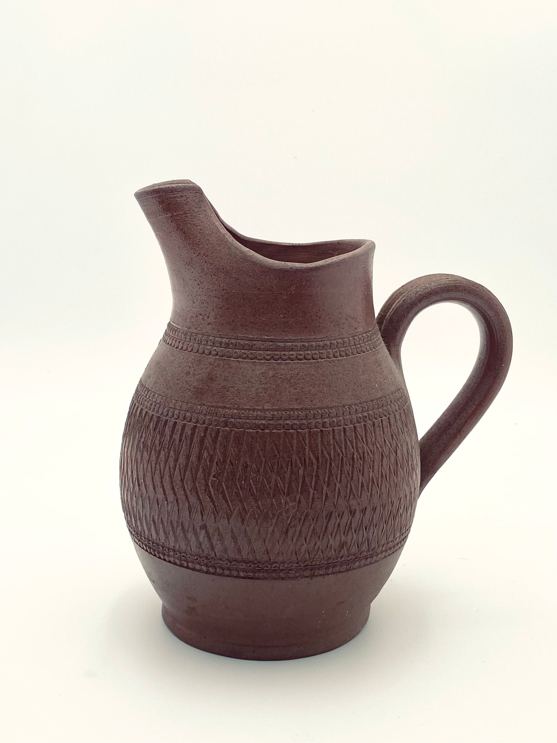 Deze oude, handgemaakte Grès de Berry kan is door de diepbruine kleur en de met de hand ingekerfde patronen wel een echt pronkstuk. De kan is in perfecte staat en is super mooi op tafel als waterkan, als vaas voor je vers geplukte bloemen of gewoon zo knap als 'ie is op een plank of kastje en lekker veel naar kijken.