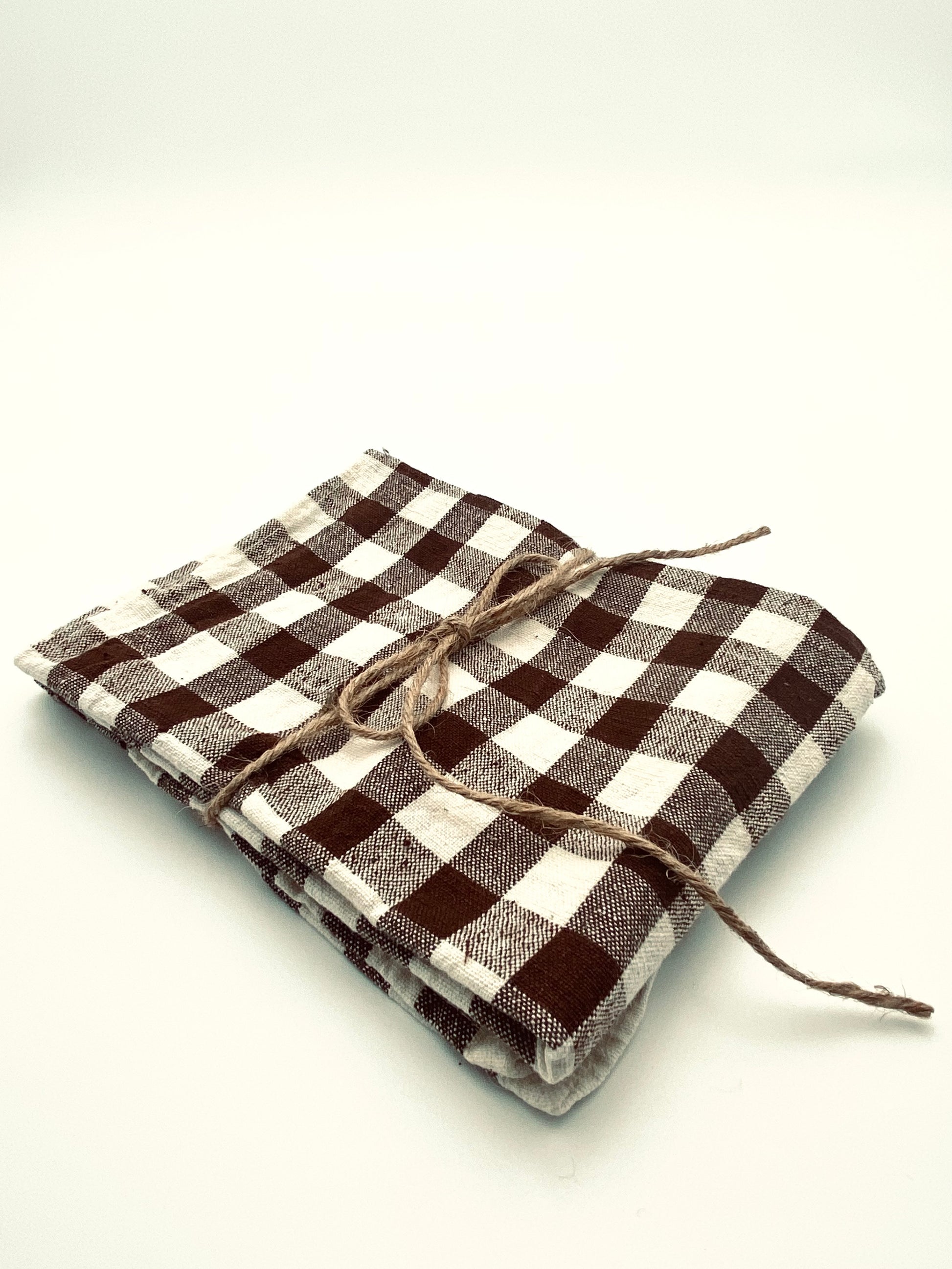 Een bruin ruitje, daar zijn wij dol op. Vooral als het oude linnen theedoeken zijn, zoals deze. Deze theedoeken zijn niet alleen praktisch, multi-inzetbaar en wat al niet meer, maar ze zijn ook gewoon knap zoals ze zijn. De theedoeken worden los verkocht.