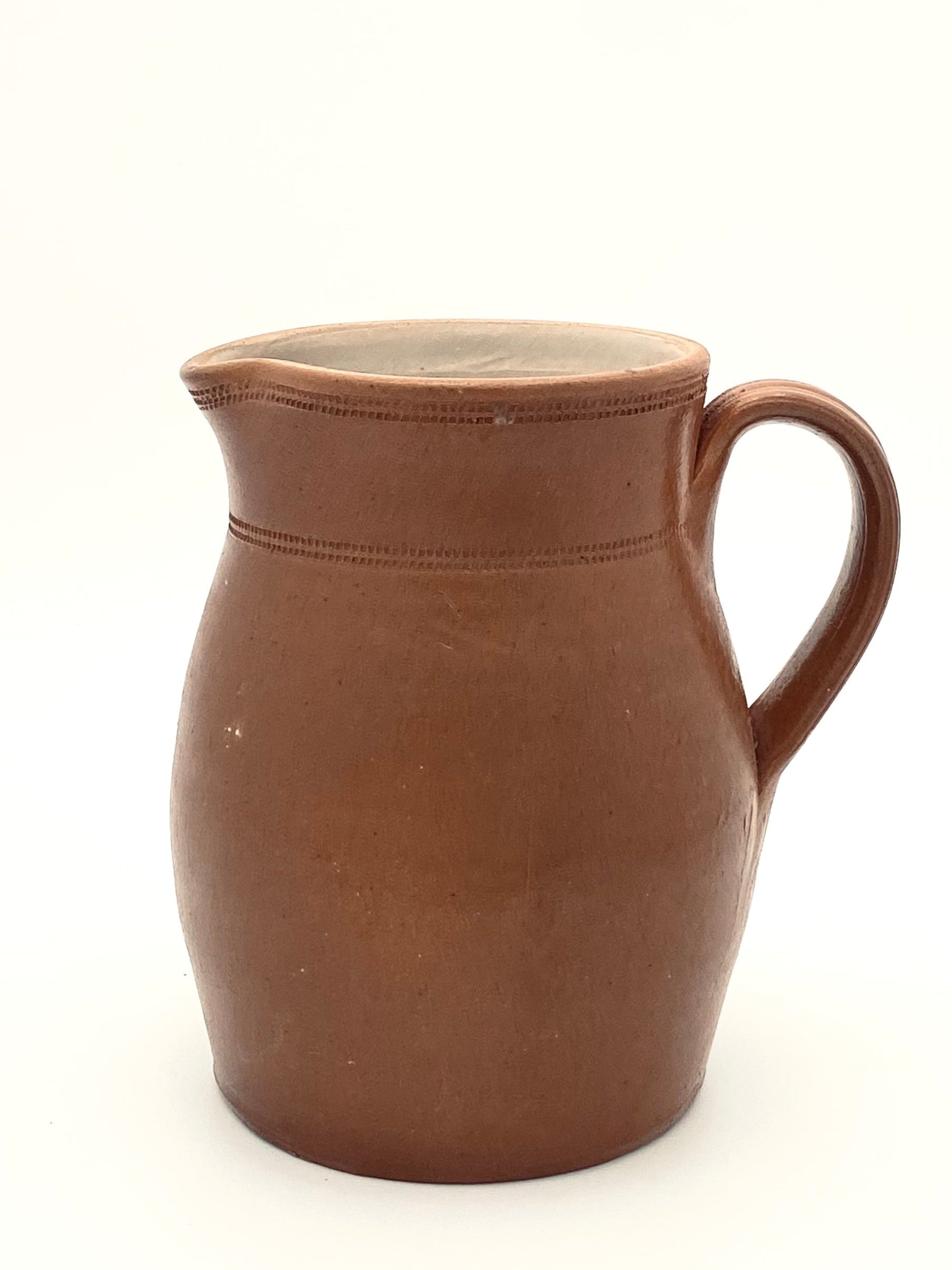 Deze handgemaakte oude Grès kan is groot van formaat. Super mooi op tafel als waterkan, als vaas voor je vers geplukte bloemen, of in de keuken als lepelpot naast het gasfornuis.