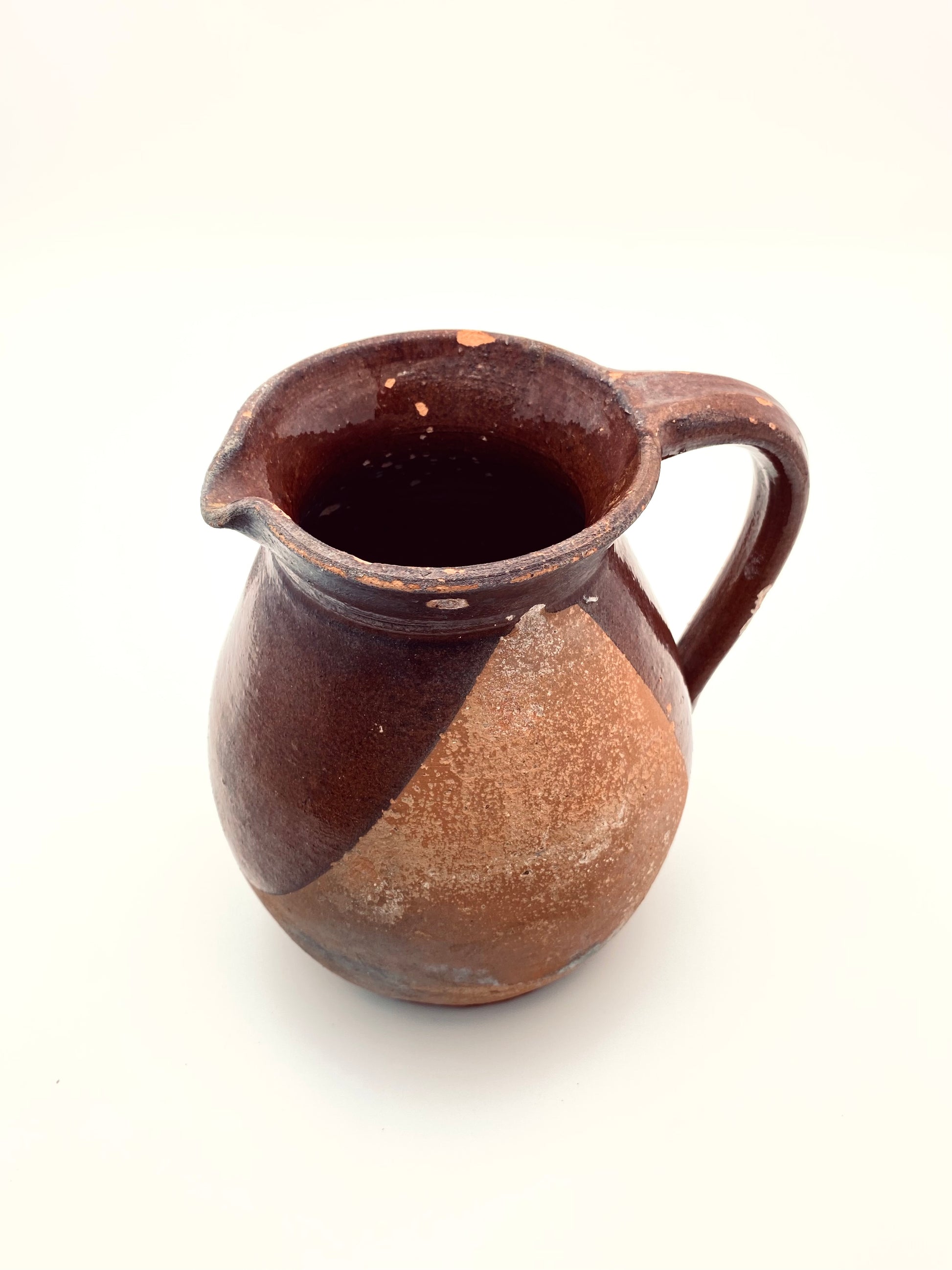 Of je er nu je pollepels in bewaard naast het fornuis, gebruikt als vaas voor je laatste dahlia's uit de tuin of als waterkan op je mooi gedekte tafel. Wat je er ook mee doet, deze hele oude kan van aardewerk met bruin glazuur is hoe dan ook een pronkstuk in huis.