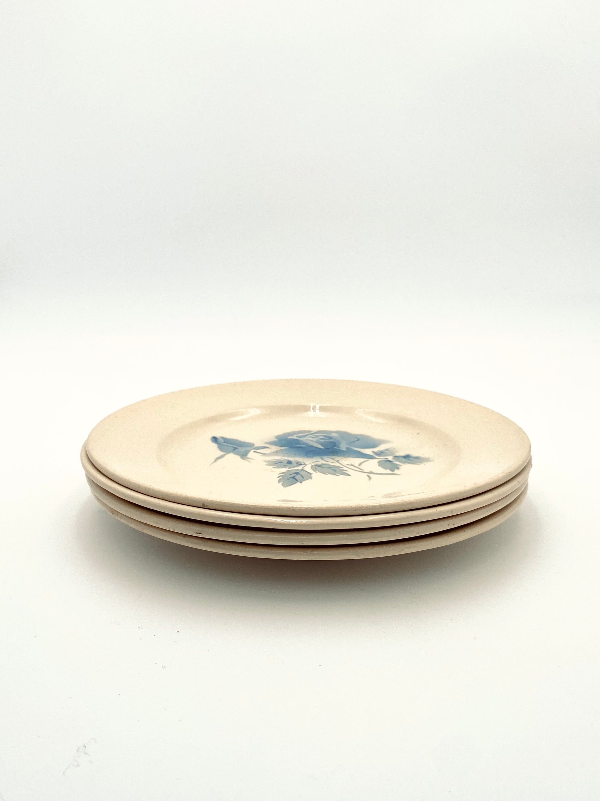 Oude Digoin et Sarreguemines borden met blauwe rozen en een dikke laag glazuur. Voor een instant Frans gevoel op tafel of aan de muur. De borden worden los verkocht en hebben een doorsnede van 20cm.