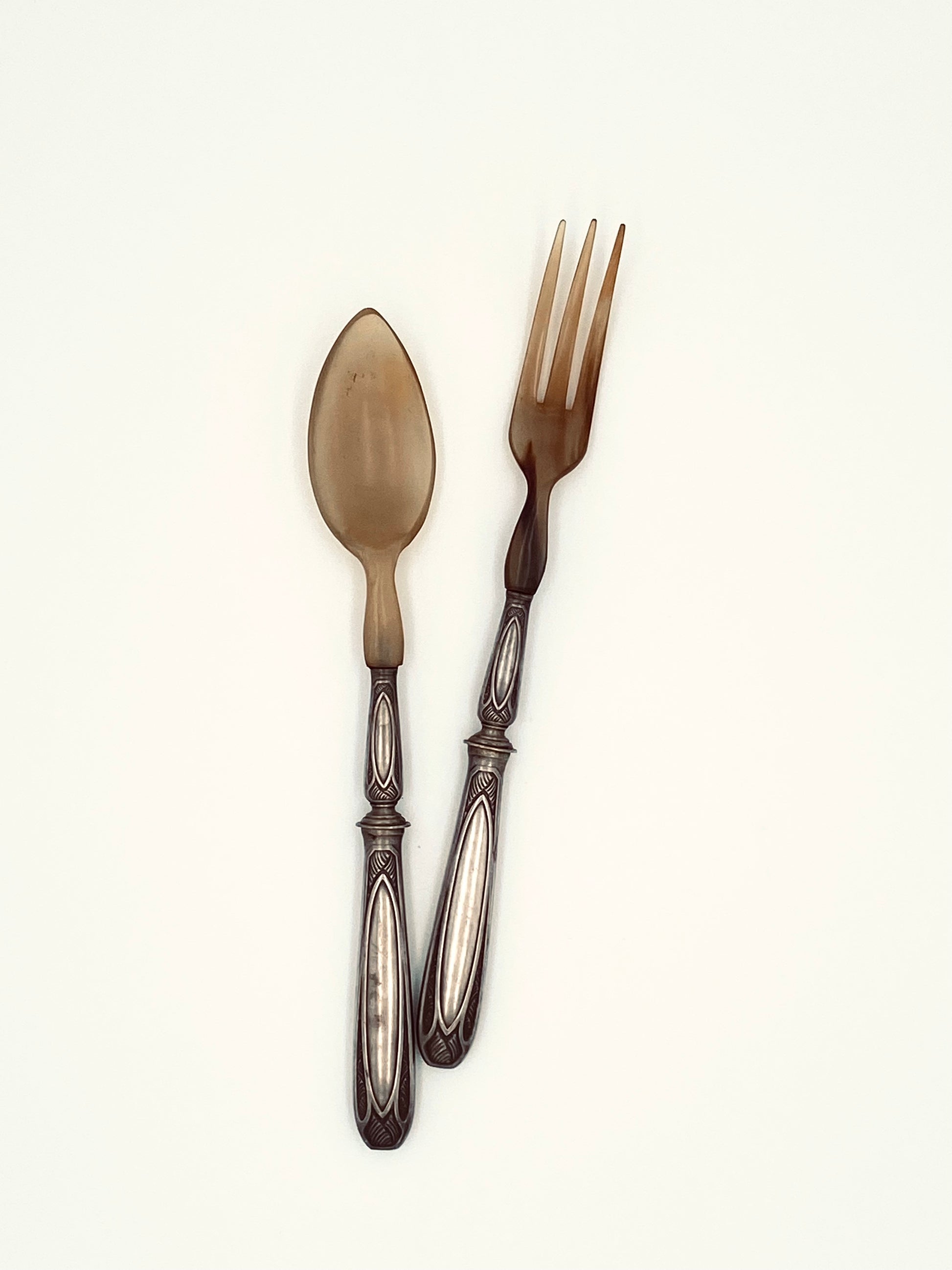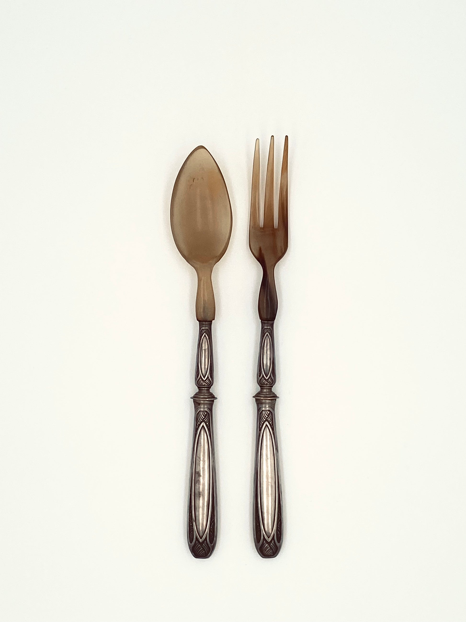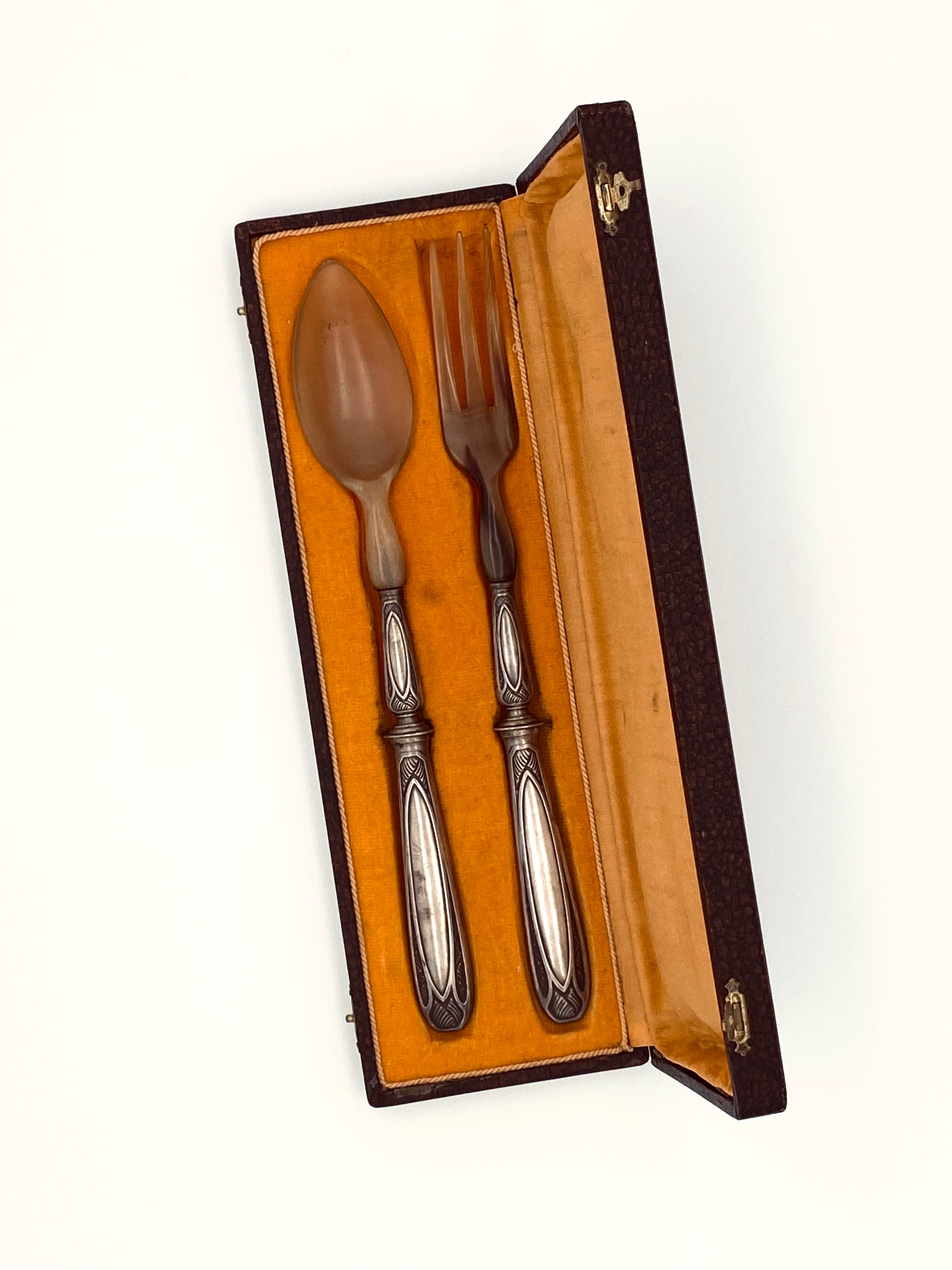 Trés knap: oud, zwaar verzilverd, extra groot (30cm) slabestek. Inclusief met velour en satijn beklede opbergdoos van imitatie slangenleer.